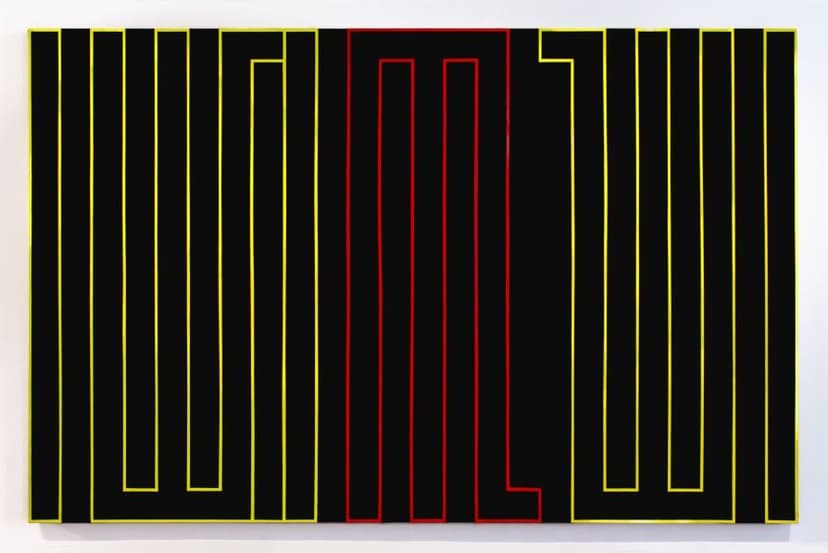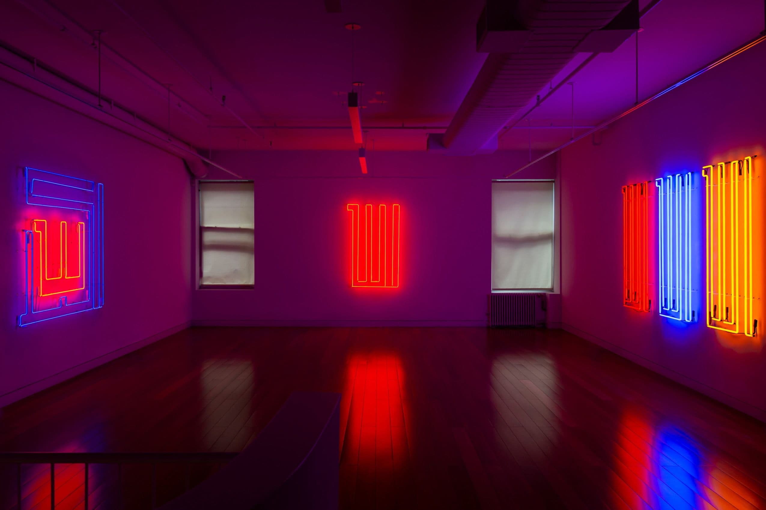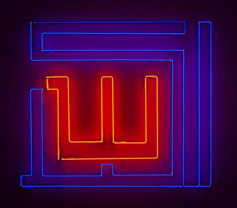 Rasheed Araeen’s In Lights at Aicon features new paintings, geometric wall structures, and neon works that expand his decades-long engagement with form, space, and institutional critique. Centered on minimalist abstraction and viewer interaction, the exhibition also confronts systemic exclusion in the art world. Araeen’s neon pieces reimagine spatial dynamics, while his painted calligraphic abstractions reclaim geometric visual language beyond Eurocentric frameworks.