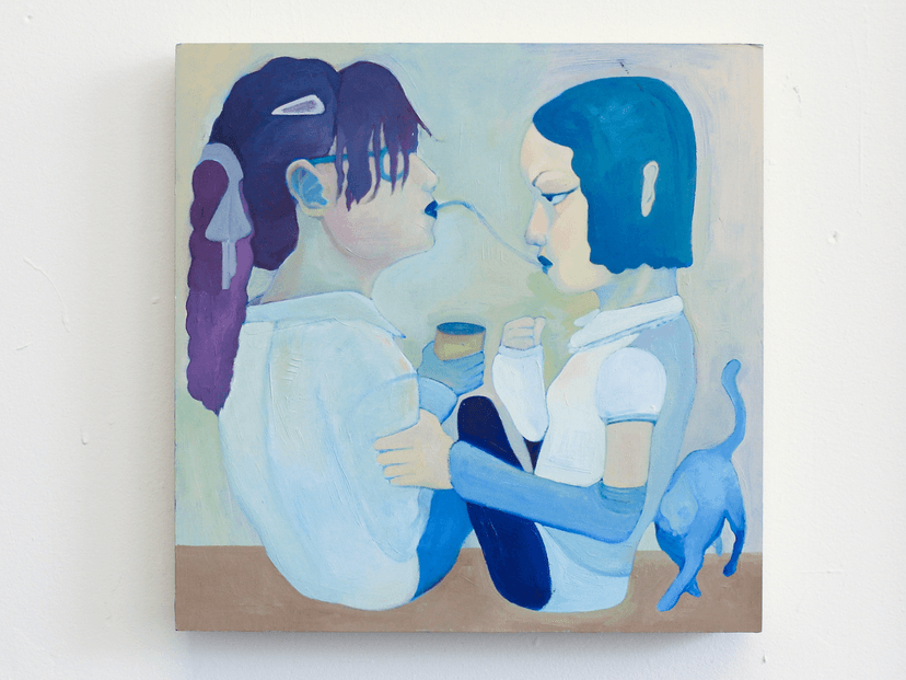 Xiangni Song: Incidentals presents recent paintings depicting intimate, diaristic scenes drawn from the artist’s daily life and imagination. Using a restrained palette and subtly distorted figuration, Song portrays moments of affection, solitude, and reflection. The works combine personal memory and dreamlike imagery, with shifts in tone and gesture shaping their emotional register.