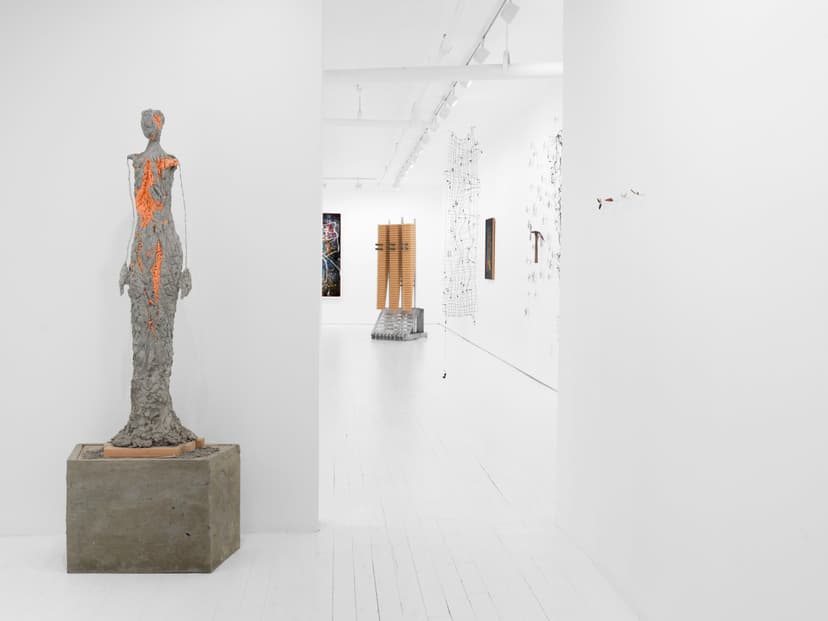 Industrial Dry, curated by Francesca Altamura at Jack Barrett, gathers artists whose material practices examine the changing urban landscape through abstraction. Across a wide range of media—from terrazzo to steel, wool to petroleum—these works prioritize tactile engagement as a way to process identity, memory, labor, and loss. Found and industrial materials are reshaped into structures that confront fragility, inviting reflection on what cities leave behind.
