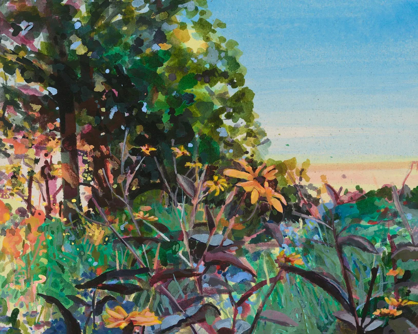 Carly Glovinski: Into the Garden marks the artist's return to canvas after nearly two decades, drawing on three Maine gardens — a community garden she created at the former home of writer May Sarton, Celia Thaxter's historic island garden, and her own. Acrylic paintings capture fleeting moments of tending and gathering through washy, gestural brushwork. Shaped wall works magnify pressed flowers between representation and sculpture, while the Field Folio series combines paint and cut paper into immersive, horizonless meadow compositions. Cultivation and painting become reciprocal acts.