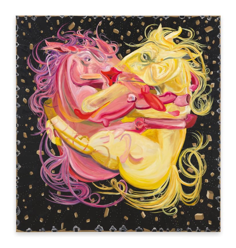 The center does not fold presents paintings that explore recurrence and variation. Each work generates new versions of earlier motifs, allowing forms and figures to reappear, shift, and expand. Rather than converging on a single point, the paintings emphasize unfolding possibilities and the continual rethinking of invented protagonists.