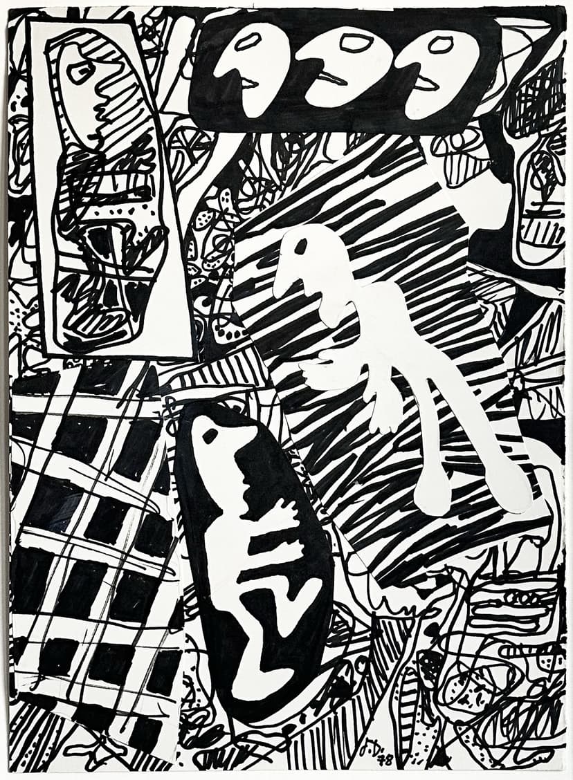 This exhibition pairs works by Jean Dubuffet and John Fahey, artists who moved between visual art and music. Dubuffet, founder of Art Brut, created paintings and experimental compositions shaped by improvisation and anti-academic methods. Fahey, a key figure in American primitive guitar, also made drawings and paintings that parallel his musical phrasing. Together, their practices reveal shared approaches to rhythm, gesture, and cross-disciplinary experimentation.
