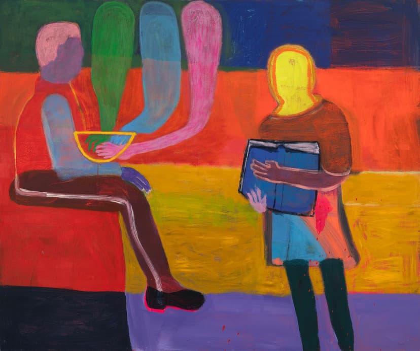 Katherine Bradford’s exhibition at Canada features luminous paintings where swimmers, superheroes, and other figures drift through saturated, abstract spaces like outer space and open water. Using layered acrylics and dry brushwork, Bradford creates glowing, textured surfaces. Her characters—often isolated or exposed—convey ambiguity and introspection. With dreamlike, moody compositions, Bradford explores questions of identity, connection, and perception through enigmatic, atmospheric scenes.