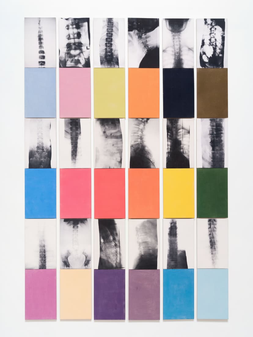 X-ray Island is an exhibition of work by Kunié Sugiura spanning six decades, bringing together photography, painting, photograms, and X-ray works. The presentation examines the relationship between surface and interior, emphasizing photography as a material and constructed object rather than a transparent image. Works range from early hand-printed color photographs to later photograms and X-rays, including Beach 2 and Vertebra, which contrast exterior landscapes with internal anatomical structures. Across the exhibition, Sugiura foregrounds process, materiality, and the physical trace of image-making.