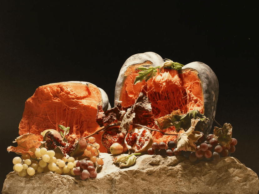 This exhibition commemorates Luciano Ventrone, five years after his death. Born in Rome in 1942, Ventrone developed a realist approach focused on color and light, following early studies in architecture and later guidance from Federico Zeri. Devoted to depicting the natural world, he continued working from his home in Collelongo, now a museum dedicated to his life and practice.