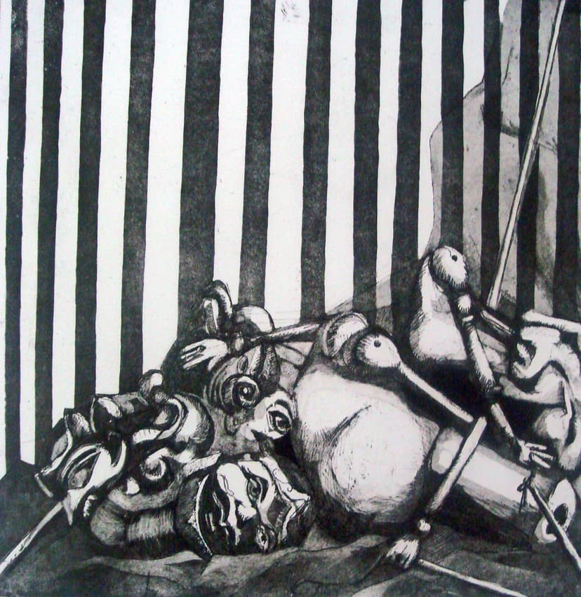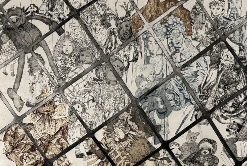 The World Is Surreal marks Margot Bittenbender’s second solo exhibition at Prince Street Gallery, bringing together dreamlike prints and sharply charged surreal imagery. Early works draw on Japanese motifs to create unreal juxtapositions, while later pieces respond to political cruelty and cultural violence. Recurring puppets and dolls—part of a series spanning over 25 years—stand in for humanity, voicing unease, vulnerability, and resistance.