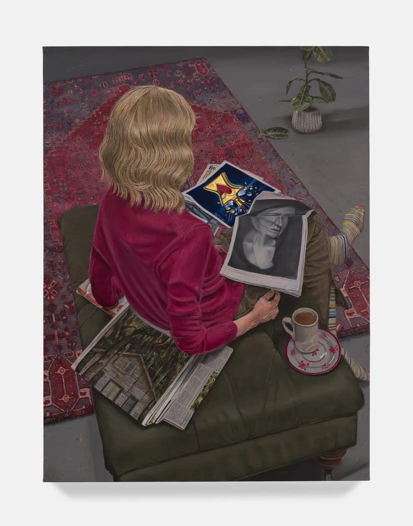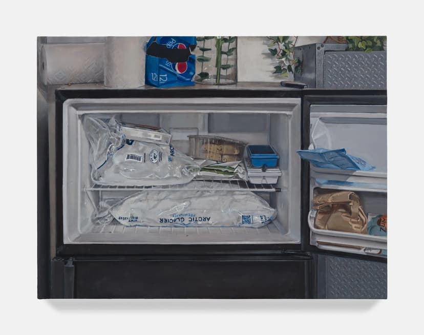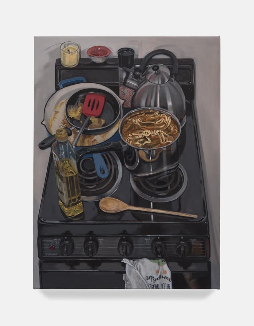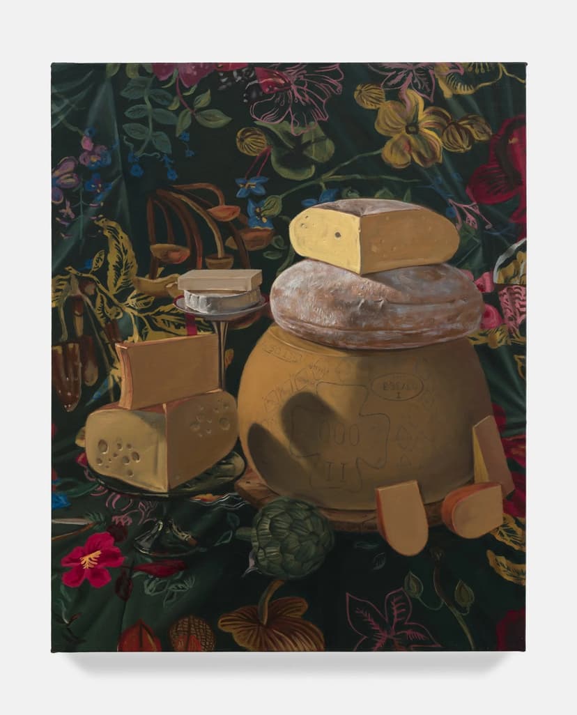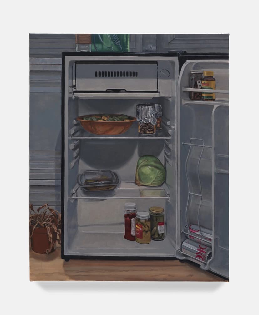 In Scott Marvel Cassidy’s still lifes and portraits, life is funny, tragic, boring, sloppy, slow, quiet, beautiful. His subdued tableaux train a meditative gaze on loved ones and belongings. The subjects are modest, familiar—a tangled lock of hair, a refrigerator, aged cheeses—all rendered with a flat, affectionate warmth and deadpan humor. Cassidy’s brush keeps a devotional focus on domestic mess, transforming the banal into something mythic. Here are our grubby, crowded living and workspaces, glancing moments with the people we love. We should really clean today but we probably won’t.