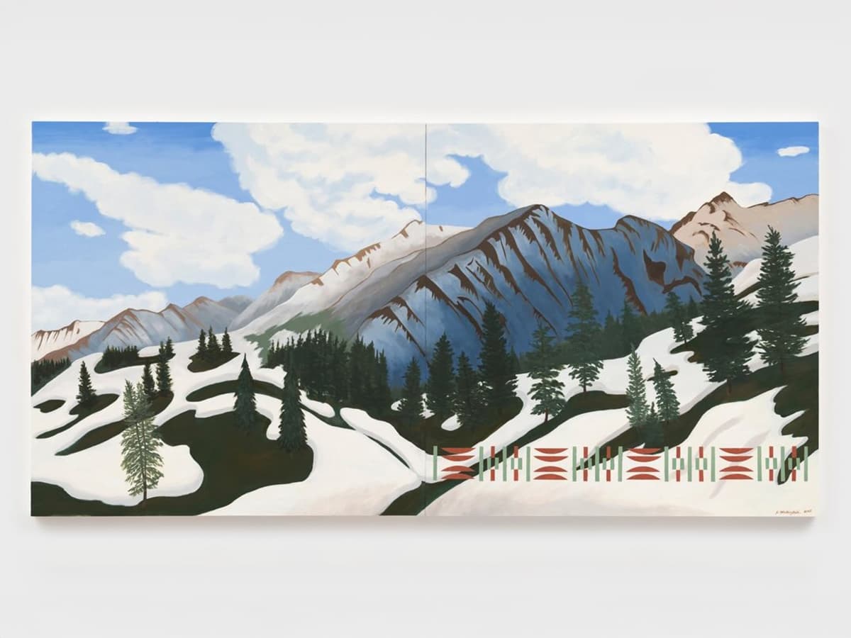 Kay WalkingStick: Mesas/Mountains/Sky presents new paintings on panel and paper spanning landscapes across Colorado, California, Arizona, New Mexico, Idaho, and Rhode Island. Working from memory after visiting sites in person, WalkingStick moves between watercolor and oil, precision and expressiveness. Central to the work is her overlay of Indigenous patterning — researched in Smithsonian archives — onto painted surfaces as a gesture of reclamation and protection. Complementing the American landscape tradition, the works reclaim land not as territory but as a site of cultural memory and ancestral continuity.