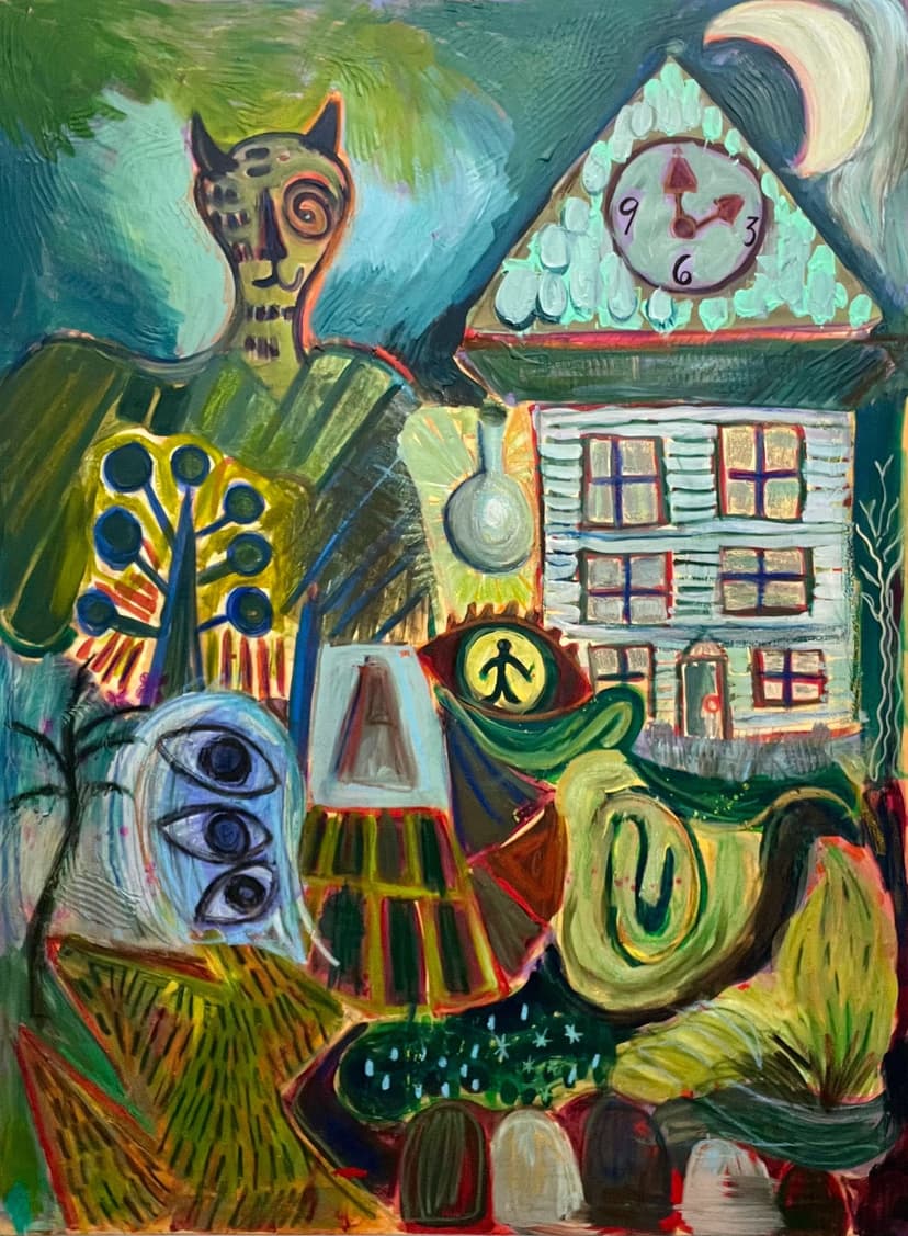 Tappeto Volante presents Mixed Magic, Judi Keeshan’s first New York solo exhibition, curated by Jared Deery and JJ Manford. Spanning a decade of work, the show features acrylic and oil paintings exploring introspection, abstraction, and symbolism. Keeshan’s process of layering and erasure reveals dreamlike figures, celestial imagery, and mythological hybrids. Engaging with memory, identity, and transformation, her works exist in a space of fluid meaning, bridging the personal and the universal.