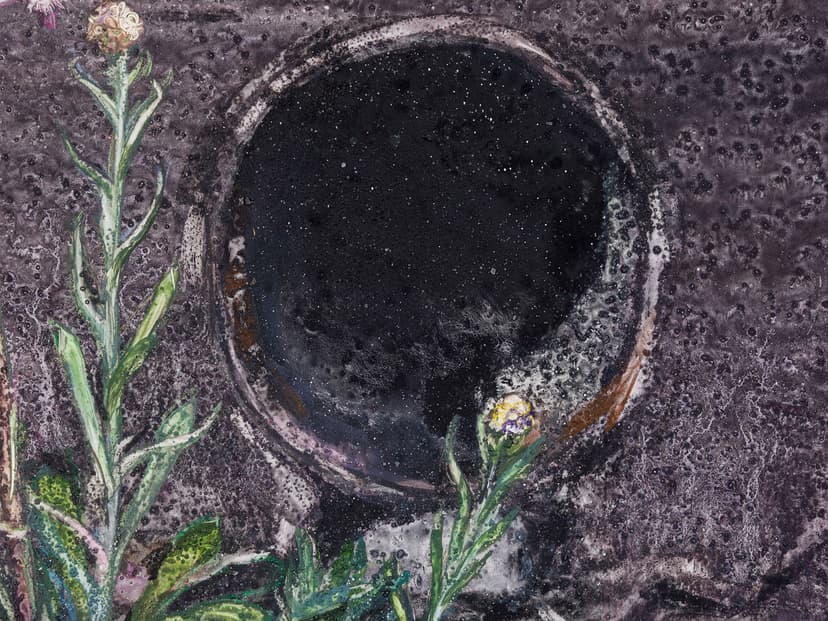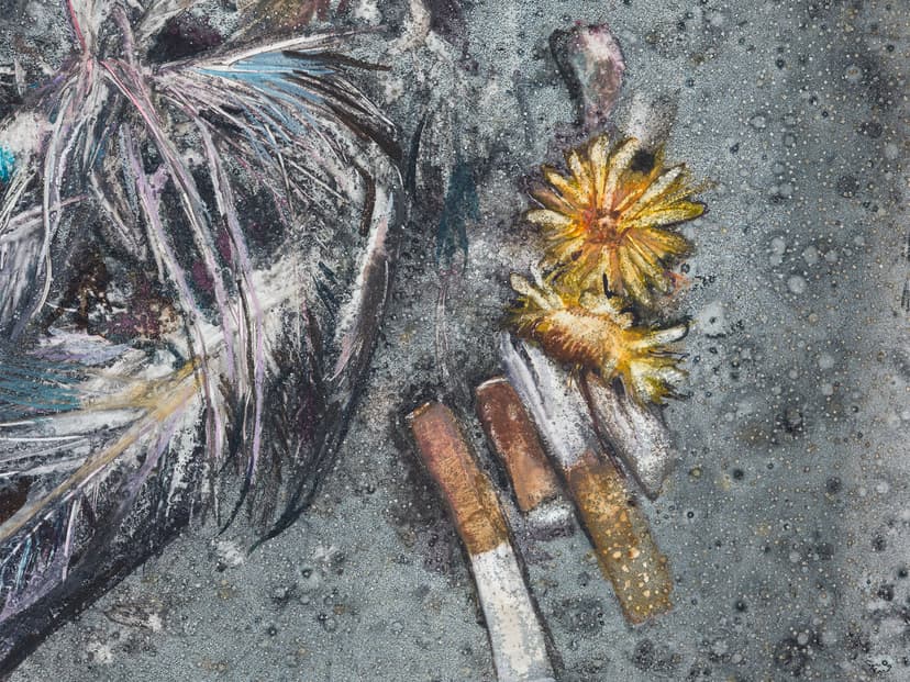 As We Grind Our Teeth To Dust is a solo exhibition of new works by Molly Segal. The exhibition presents paintings on paper depicting overlooked scenes from urban environments, including weeds, debris, and traces of everyday life. Through sustained attention to the ground and peripheral spaces, the works reflect on artistic focus, restraint, and uncertainty in moments of social and political tension.