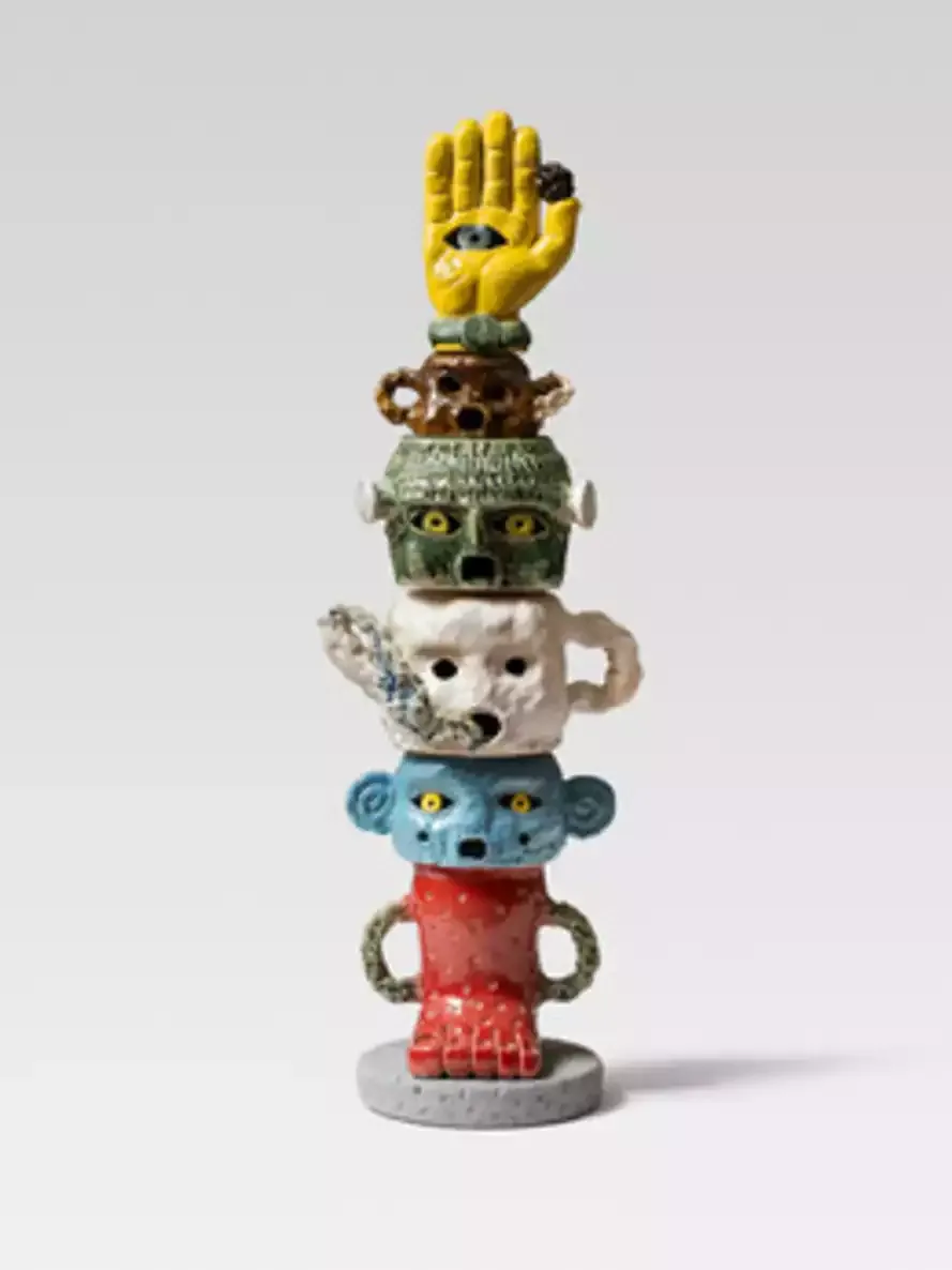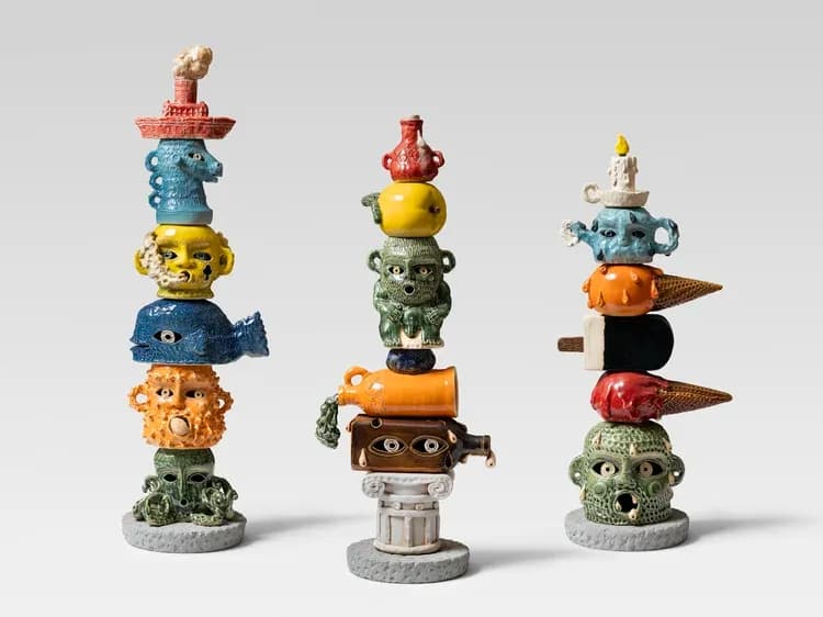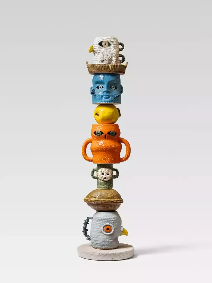 Richard Heller Gallery presents Monkey Puzzle, Eric Croes’ third solo exhibition in Los Angeles. The Brussels-based artist creates towering ceramic columns composed of stacked heads, vessels, and figures that evoke both ancient artifacts and animated characters. Croes’ sculptures invite viewers to move around them, discovering shifting details and narratives. Like the monkey puzzle tree, these enigmatic totems suggest continuity and transformation, linking histories while sparking imagination and play.