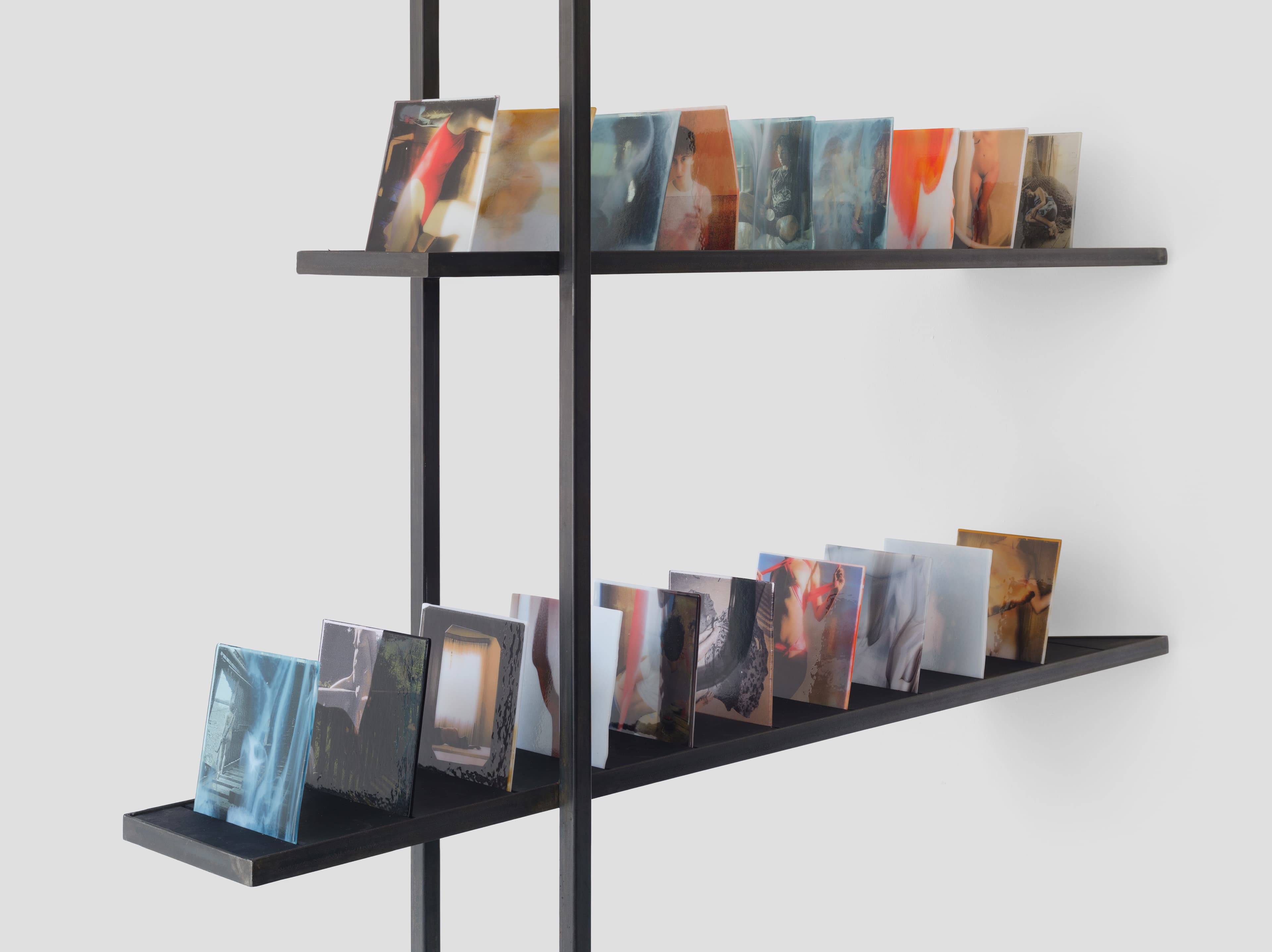 Island presents My image is a lens, a solo exhibition by Rowan Renee. Transforming the gallery into an immersive darkroom, Renee revisits a decade of self-portraits using stained glass negatives. Through light, water, and sound, the work reimagines photographic tools as metaphors for healing. Prints curl and overlap, disrupting the frame and inviting new ways of seeing. Renee's tactile process reflects shifting perception, suggesting that memory, like the body, can evolve toward freedom.