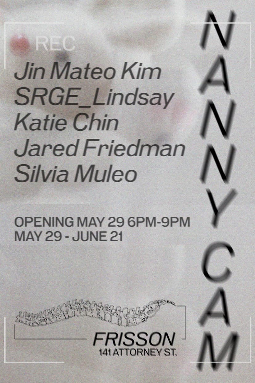 FRISSON’s inaugural exhibition, NANNYCAM, presents the work of five artists as a meditation on agency within self and structural surveillance. Today, it is passé to speak of the digital panopticon under which our reality unfolds. The contemporary neurosis that our every moment, movement, and expressed thought is tracked, recorded, and analyzed has become the status quo. Our data profiles us, feeding the algorithm with the fuel necessary to cater precise content and reinforcing limited worldviews. We are trapped within an epistemological enclosure, with continuously reinforced boundaries and a shrinking diameter. The informational quicksand is but a manifestation of the complete temporal ossification that plagues the contemporary moment. There is an overarching sense that nothing new is possible, that no alternative beyond those that have already been tried. How can we develop techniques to resist and overcome the limitations of our relationship with technology?