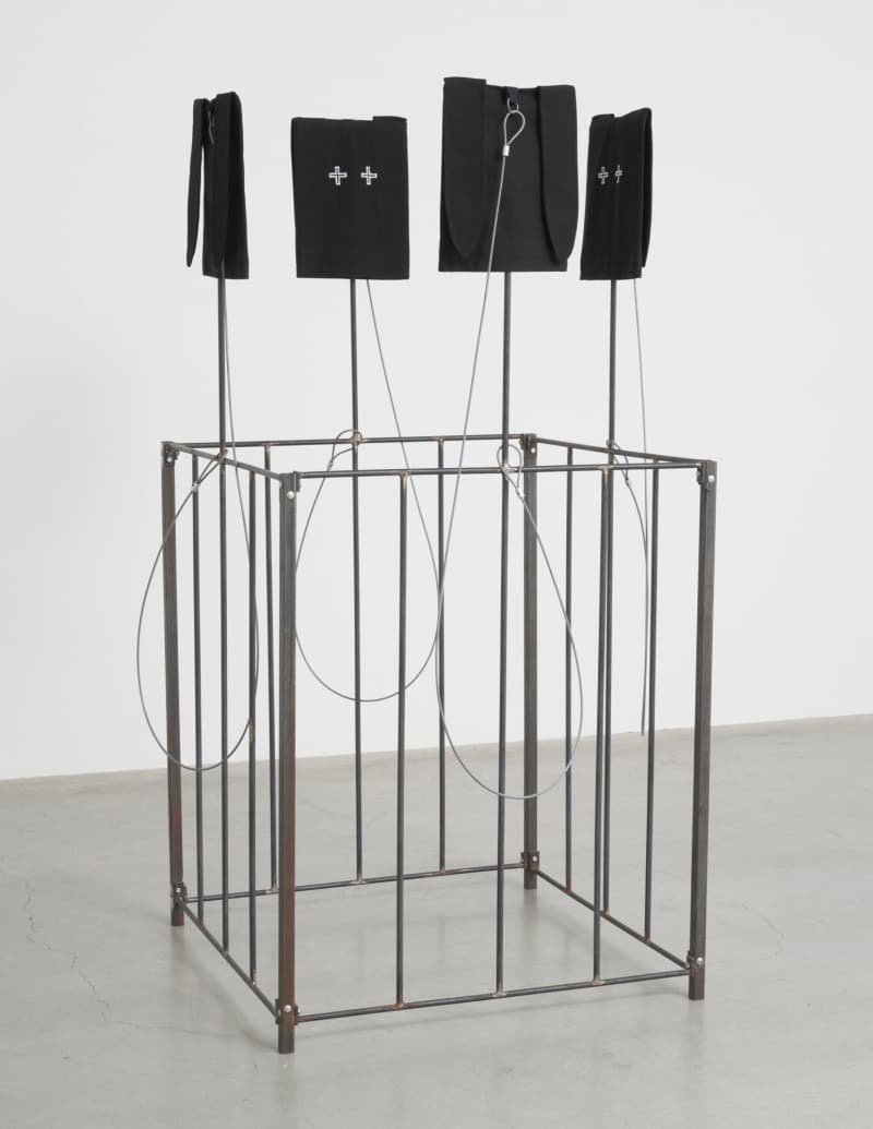 Matthew Marks presents a three-part exhibition of Nayland Blake, their largest New York show in nearly 20 years. Sex in the 90s revisits works from the AIDS crisis era exploring sexuality, race, and queer history. Inside, curated by Blake, features 14 admired artists. Session debuts new sculptures expanding on Blake’s late-1980s Restraint series.