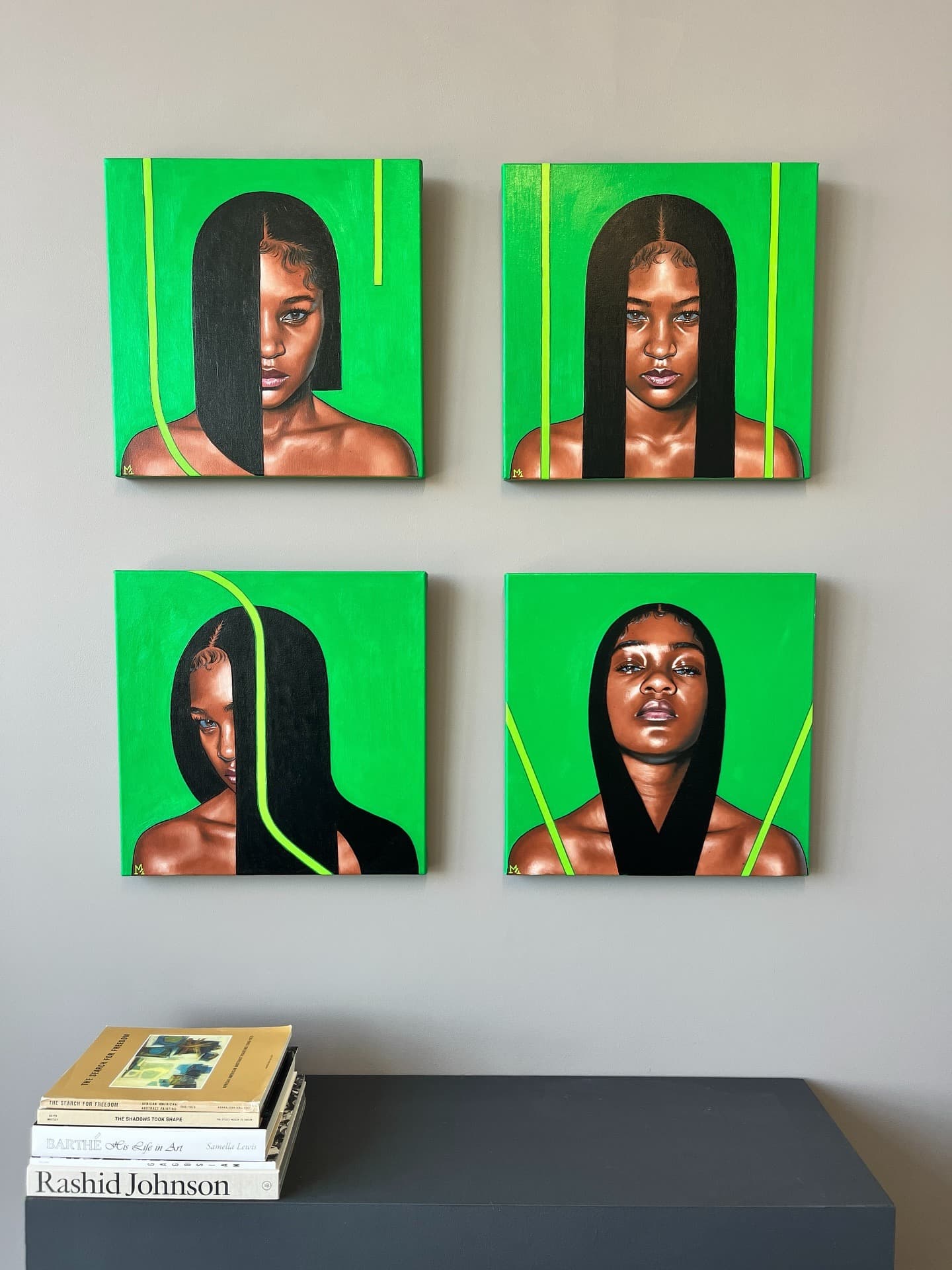 NEW GROWTH at Band of Vices presents Monica Ikegwu’s vivid new portraits centered on Black hair as structure, language, and power. Anchored by four self-portraits, the works position hair as both sculptural form and self-authorship, merging everyday styles with painterly precision. Ikegwu’s practice redefines portraiture by asserting presence and individuality while transforming personal style into a bold visual lexicon.
