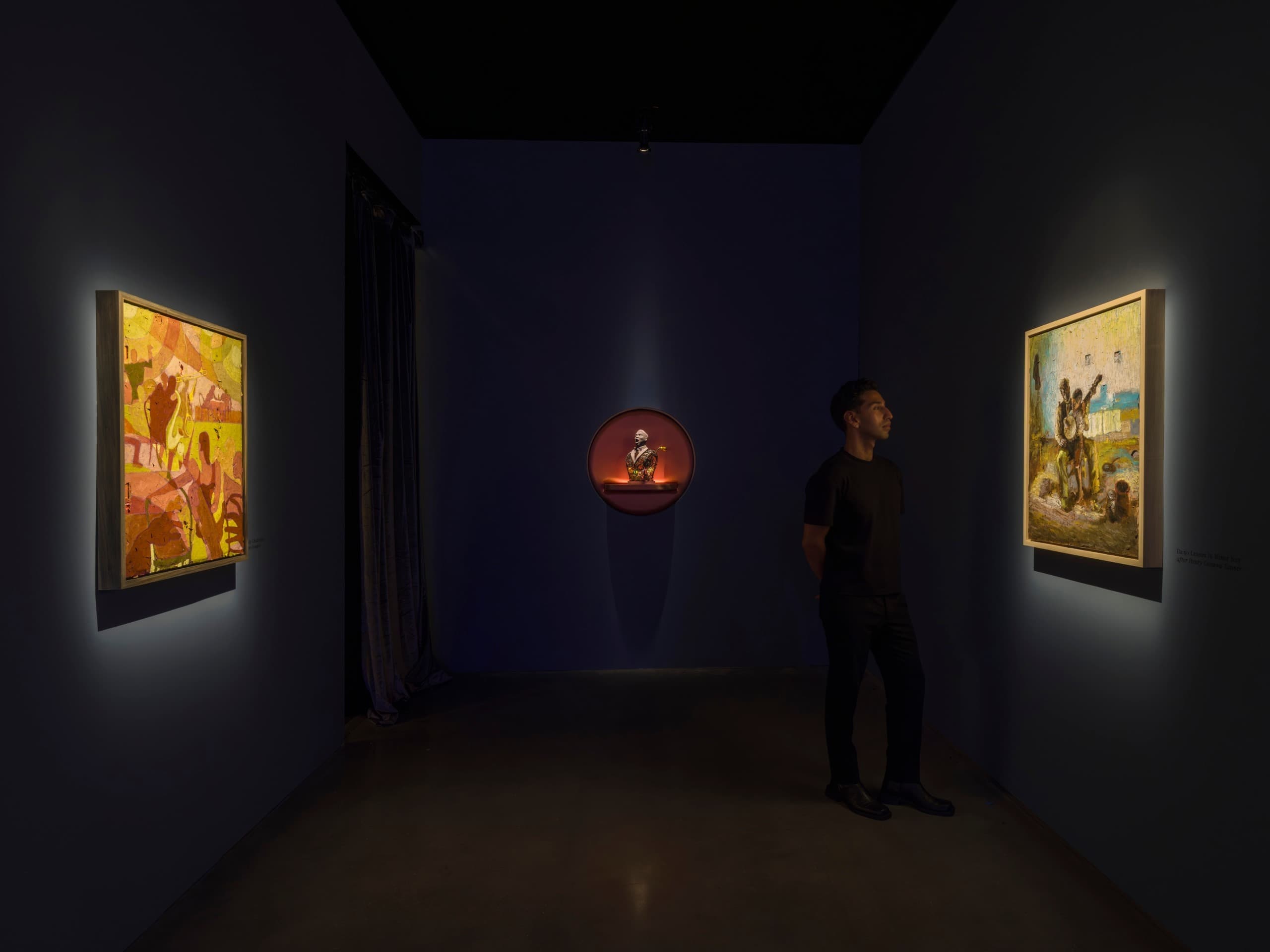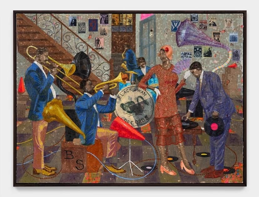 Derek Fordjour: Nightsong transforms David Kordansky Gallery into an immersive nightscape uniting painting, sculpture, live performance, and video. Visitors experience Black musical history through a four-hour songcycle, spatialized stages, and symbolic motifs. Layers of sound, light, and movement evoke survival, creativity, and memory, celebrating Black artistry while reflecting on loss, commodification, and the enduring power of voice across time.
