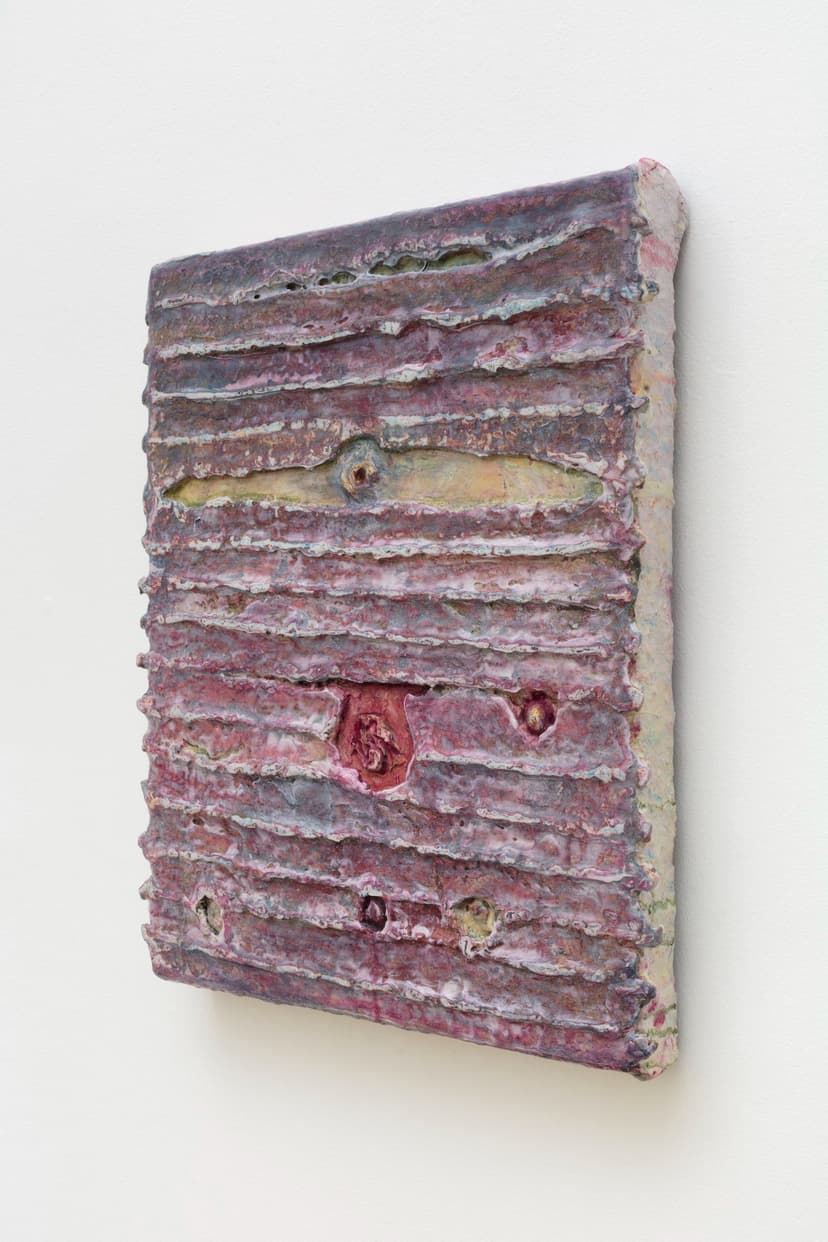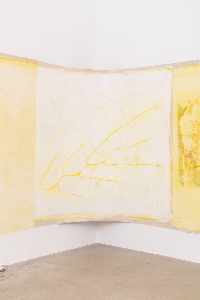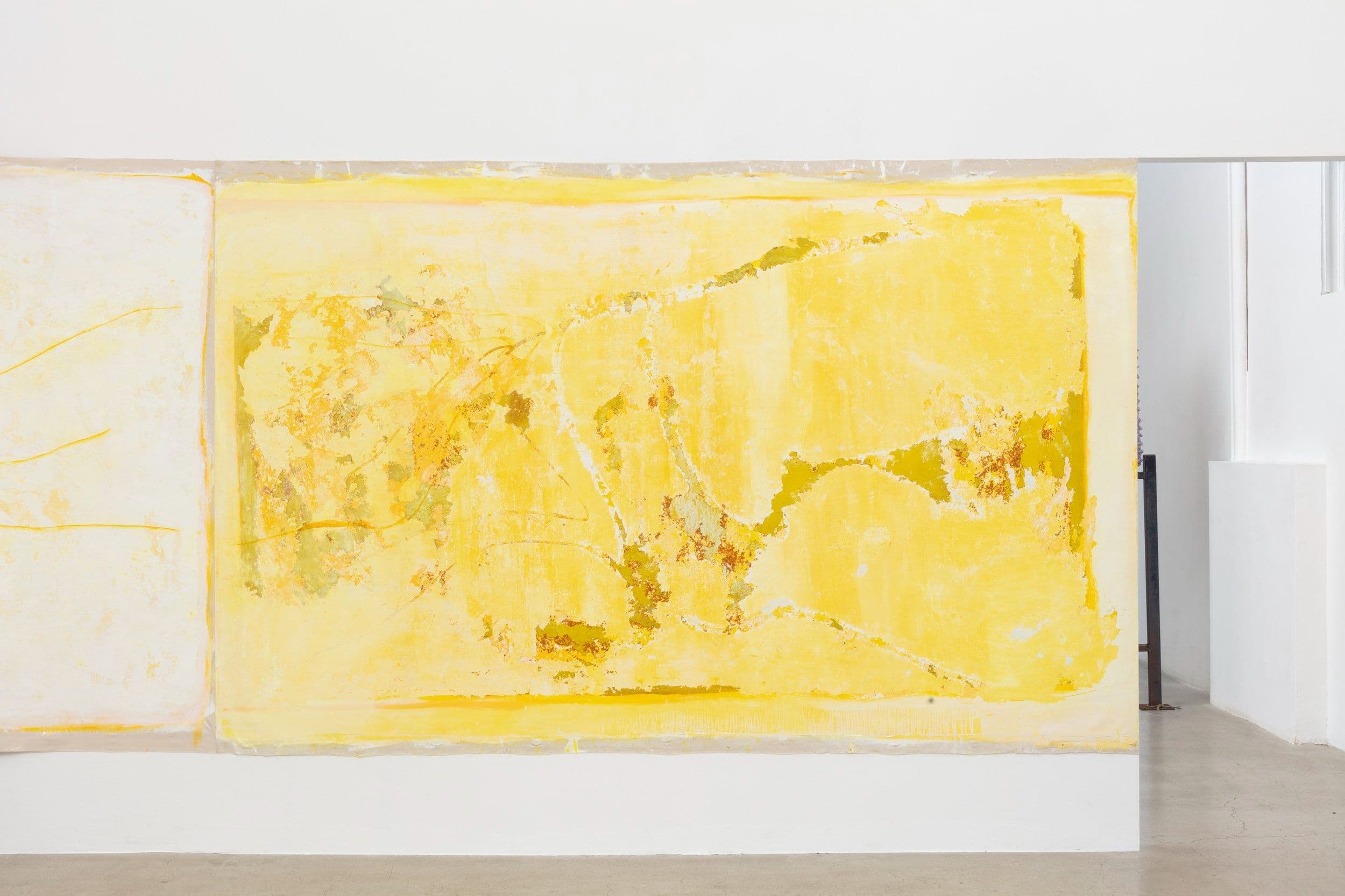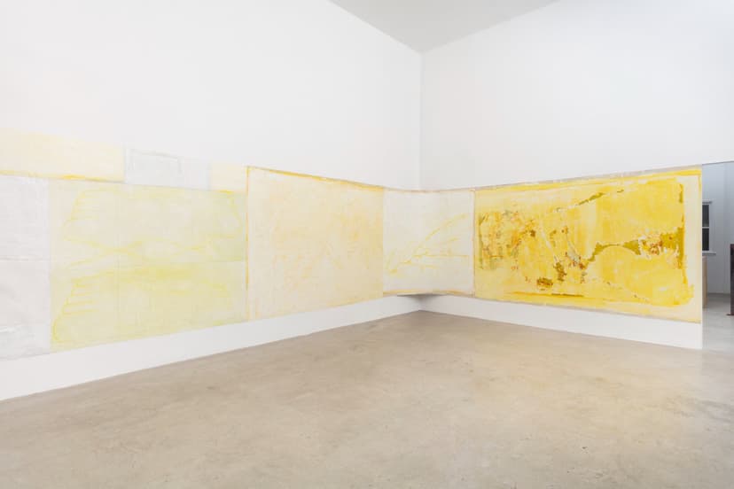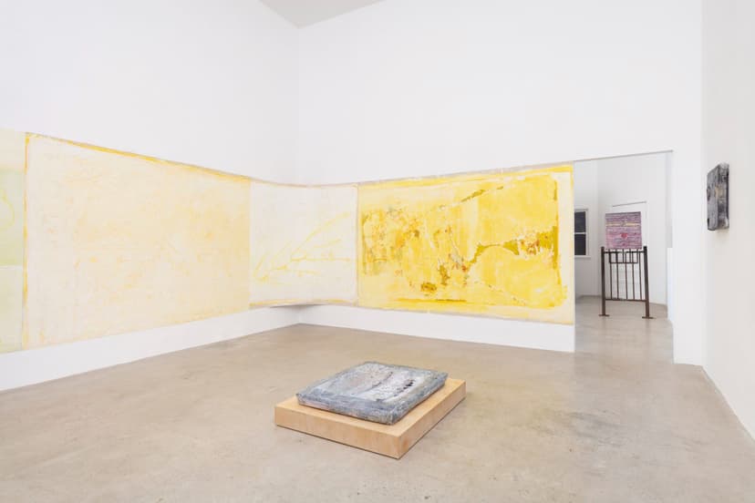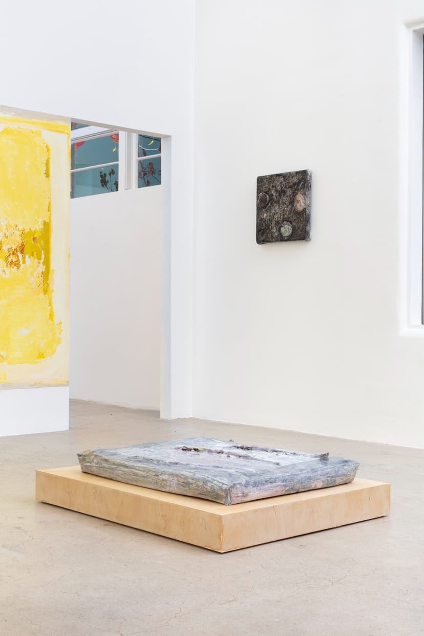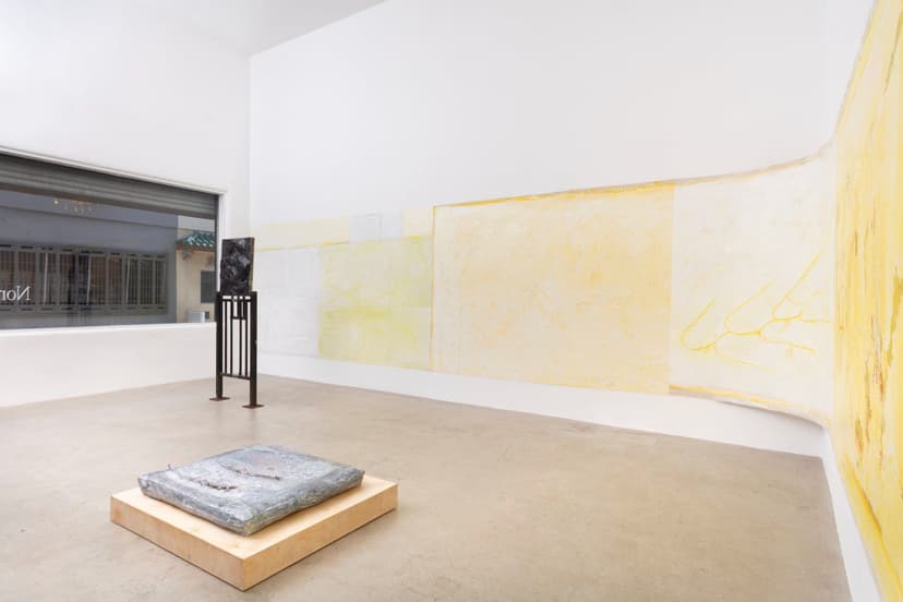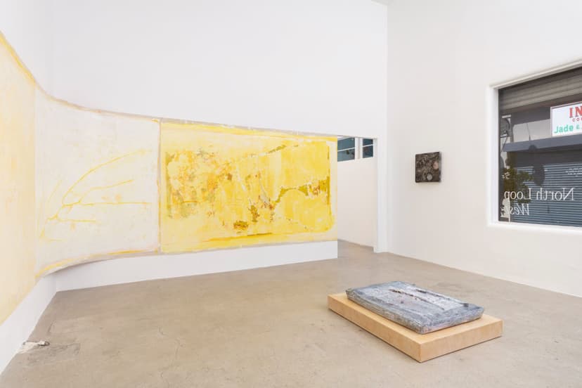 North Loop West presents "Obsessed with forgetting what it is," featuring new works by Carly Sheehan and Rebecca Shippee. Shippee, based in Los Angeles, creates large, site-specific, smooth, wax-like wall paintings using oil painting materials, with delicate lines suggesting hidden forms. Seattle-based Sheehan crafts sculptural canvases filled with memory foam, flowers, and natural pigments, reflecting her interest in memory and preservation. Both artists emphasize time, process, and material transformation in their work.