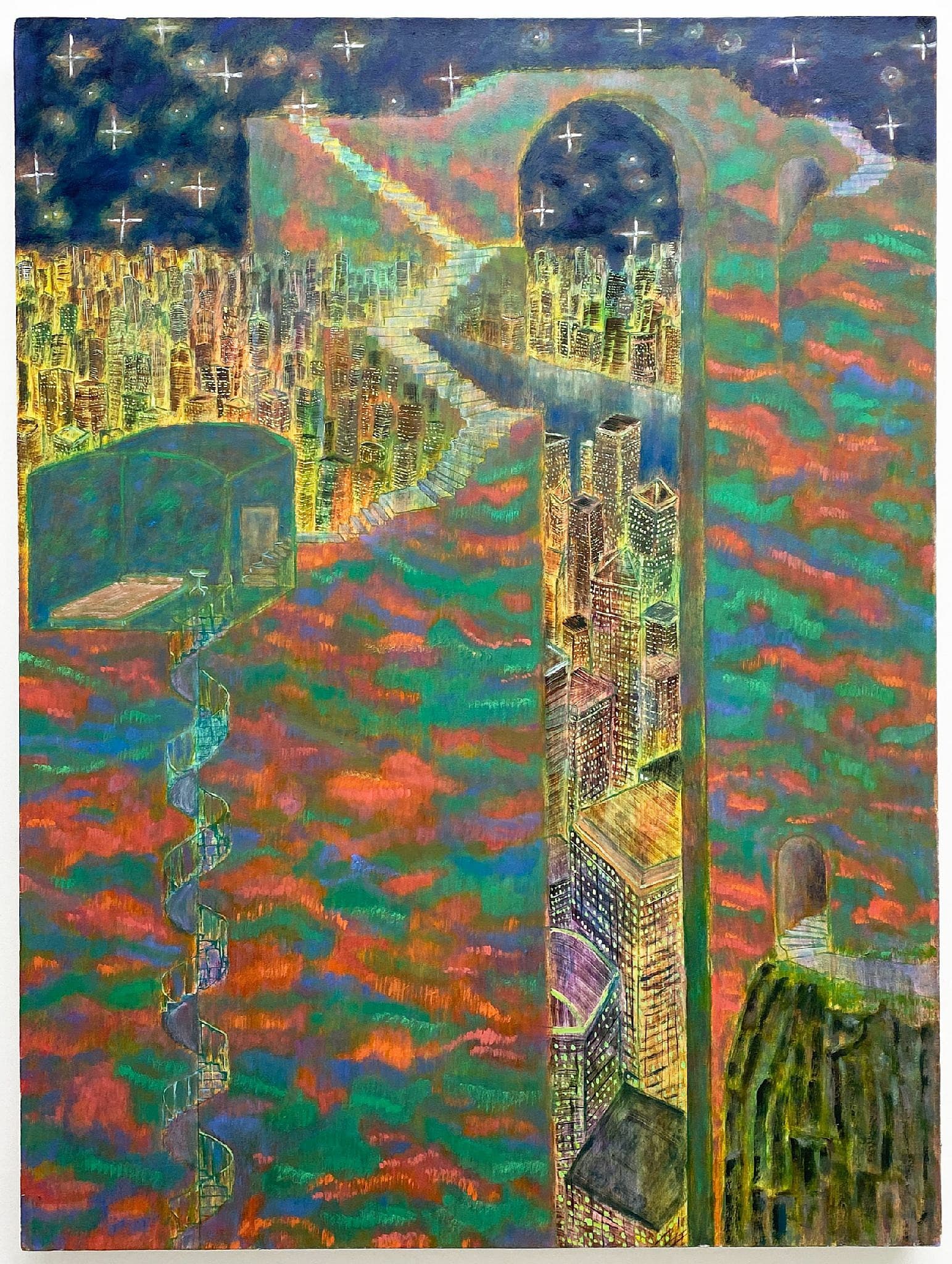 Sears Peyton Gallery presents Nick Benfey: Openings, the artist’s New York solo debut featuring recent oil paintings. Benfey views "openings" as both portals to other realms and a psychological state of contemplation. Inspired by figures like George Fox and Simone Weil, his work explores perception and existence through visual metaphors. By allowing compositions and colors to evolve freely, his paintings create immersive spaces that invite introspection and discovery.