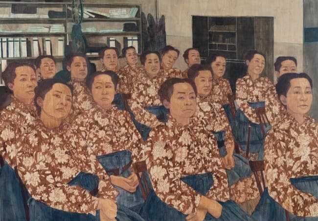 Galerie Lelong presents Parabellum, Pamela Phatsimo Sunstrum’s second solo exhibition with the gallery. Drawing from the Latin phrase “if you seek peace, prepare for war,” Sunstrum depicts intimate, everyday scenes amid conflict, centering women’s solidarity and tenderness. Her paintings and drawings reimagine war imagery as reflections on power, vulnerability, and the quiet endurance of connection.