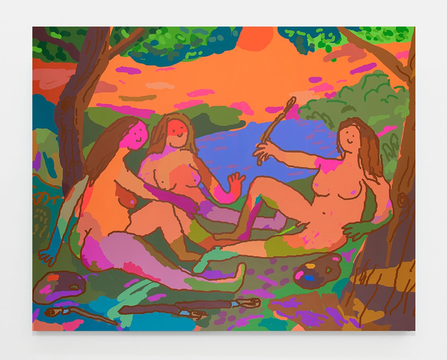 The Hole is pleased to present a solo exhibition by Philip Gerald. Frequently referencing canonical art history, Gerald infuses his compositions with irreverence and a fluorescent palette that bursts with both joy and absurdity. The Dublin based painter's vividly colorful works draw from the aesthetics of Microsoft Paint, clip art, and meme culture, transforming faux pas into richly crafted, materially resonant paintings that are just the right amount of cheeky. After numerous group shows and fairs with The Hole we couldn't be more excited to kick off summer with his New York solo debut.