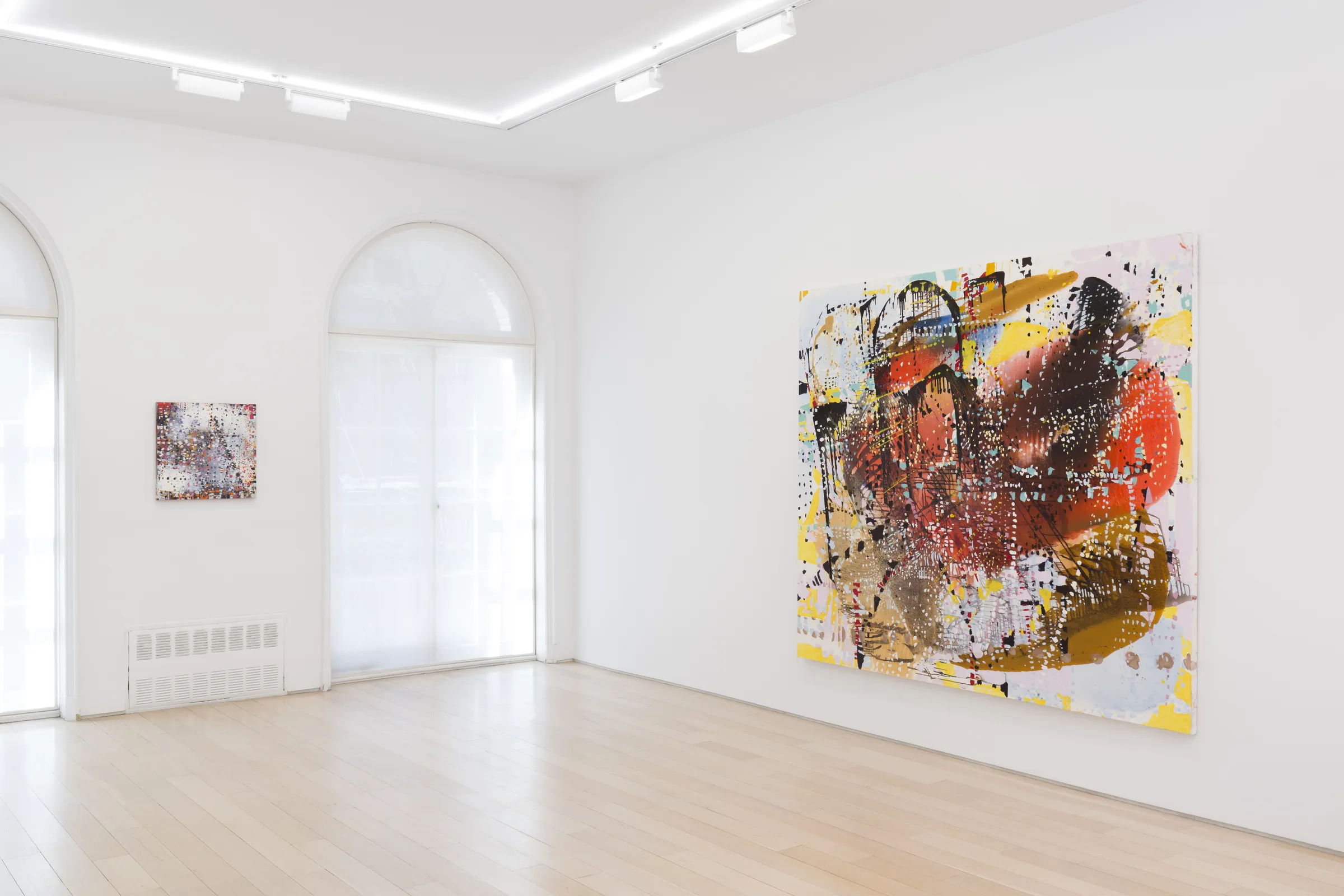 Portraits presents late works by Jackie Saccoccio, including large paintings and works on paper. Her abstract surfaces emerge through physical processes—canvases pressed and dragged together while paint remains wet—creating layered marks and flowing color. Inspired by the scale and detail of Roman Baroque sculpture, particularly Algardi’s Pope Innocent X, Saccoccio’s paintings invite viewers to encounter abstraction as a powerful, immersive presence akin to the human figure.
