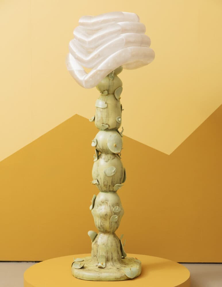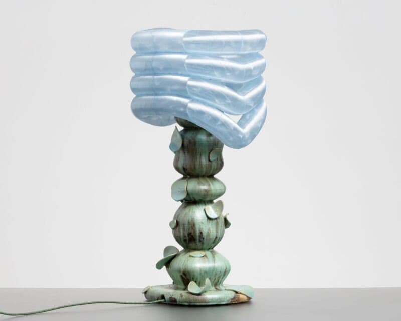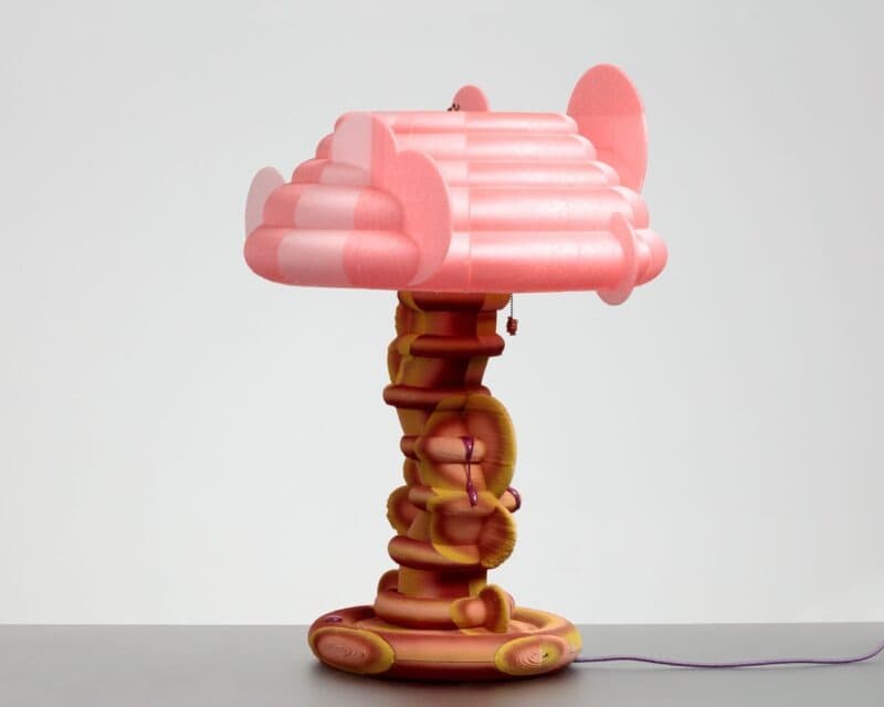 In *Power Clash*, Jolie Ngo presents her largest body of work to date, drawing inspiration from her Vietnamese heritage and California landscapes. Her work merges faceted structures inspired by rice paddies and Vietnamese lanterns with digital technologies, including 3D printing. Ngo’s focus on color and decoration, or "dressing," is explored through techniques like airbrushing and hand-painting. Her functional pieces, including lamps, tables, and mirrors, juxtapose materials and influences, highlighting technology's role in exploring place and identity.