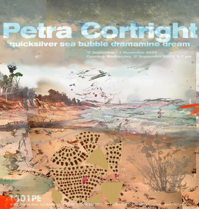Petra Cortright’s quicksilver sea bubble dramamine dream presents new digital paintings rooted in personal reflections on grief, change, and nostalgia. Moving from internet-sourced imagery to her own photographs, she draws from dioramas at the Santa Barbara Museum of Natural History. These works merge her digital methods with echoes of plein-air and Californian Impressionism, exploring her evolving connection to place and memory.