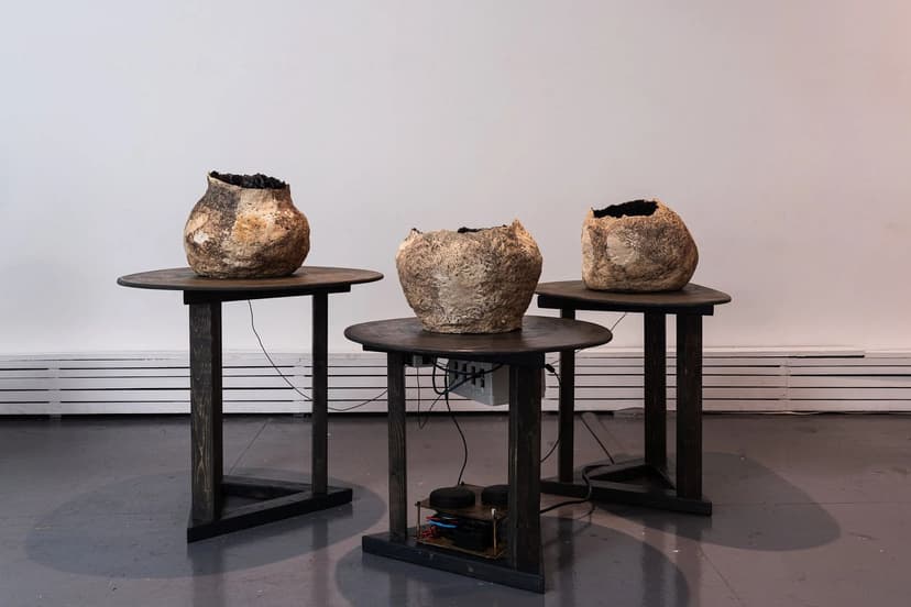 Rain Catcher at Tiger Strikes Asteroid New York marks the return of Hui-Ying Tsai and Jonathan Grover’s collaborative work. Using water, clay, seashells, and sound, the interactive installations explore ancestral memory, ephemeral connection, and sensory exchange. Viewers activate elements through touch, song, and presence, evoking myth, memory, and intimacy. A live performance, Worm Charmer, conjures tactile resistance and reclaims the body as rooted, rhythmic, and sacred.