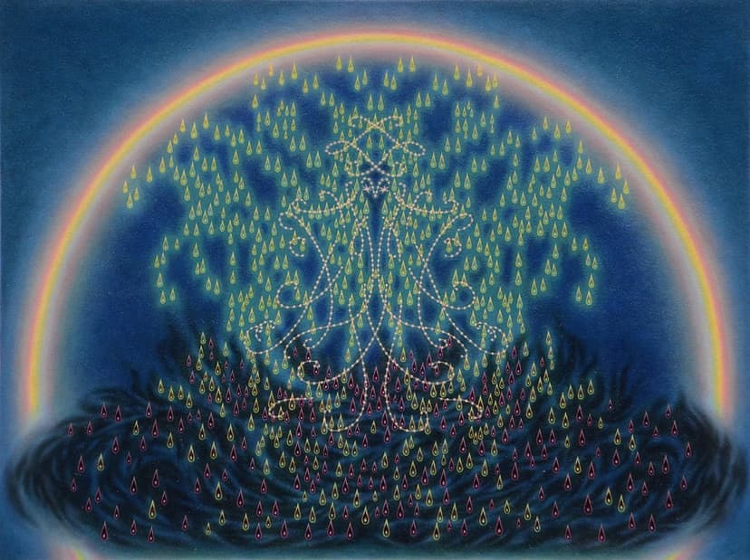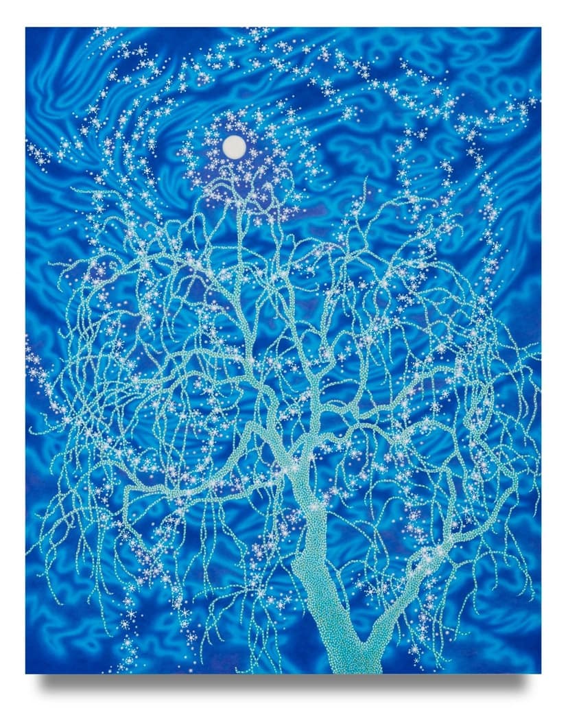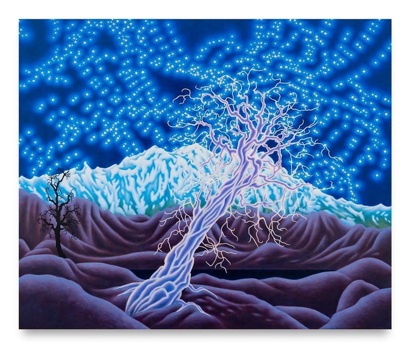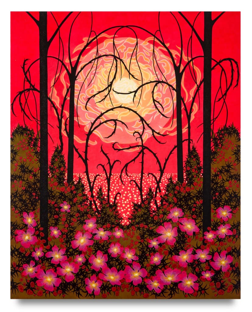 Sharon Ellis’ Recent Paintings presents intimate, imaginative landscapes shaped over five years. Through radiant color, fine detail, and layered surfaces, Ellis evokes the sublime in nature with a sense of wonder and precision. Her works are guided by instinct, drawing from a deep lineage of American modernists while creating immersive scenes that defy language. Vein-like lines, glowing skies, and dreamlike symmetry convey a reverent connection to the natural world and its unseen forces.