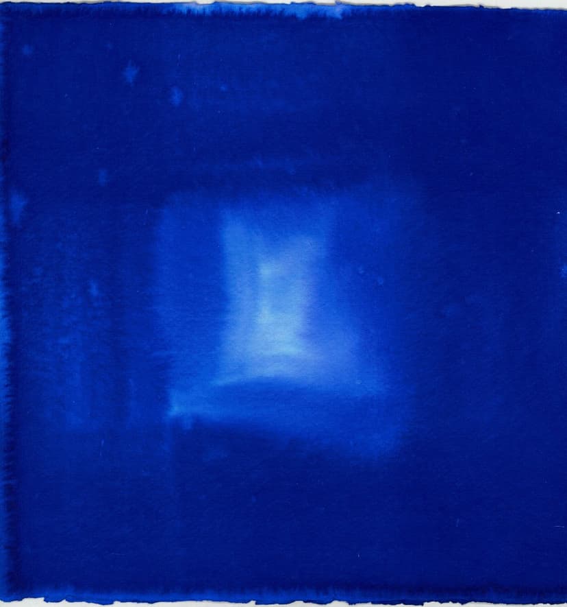 Çağla Köseoğulları: Seeping Into the Horizon brings together works on paper and video exploring bodily memory, gesture, and the threshold between image and surface. Blue ink spreads through stains and dispersions; charcoal traces record fleeting impressions from landscapes seen through a moving train window. What remains is never the scene itself but its residue — a stain of what was seen, a trace of what was remembered. The horizon functions here as an object of desire that continually recedes, never fully grasped.