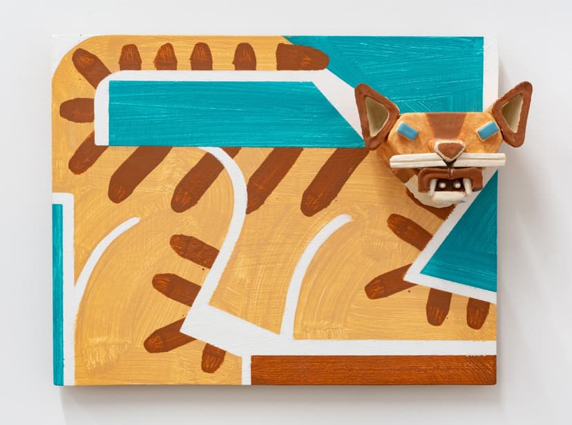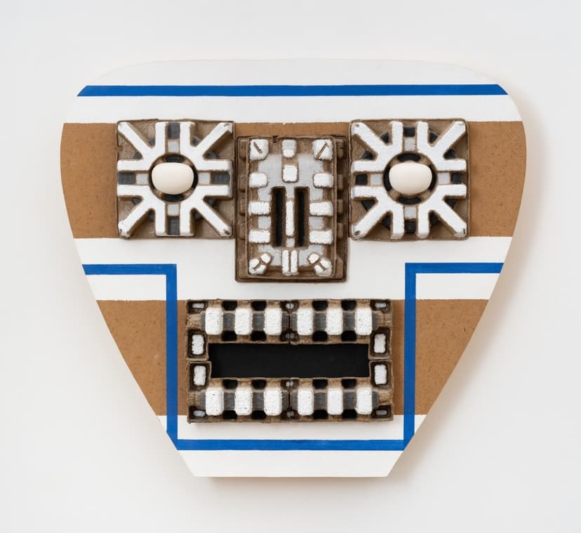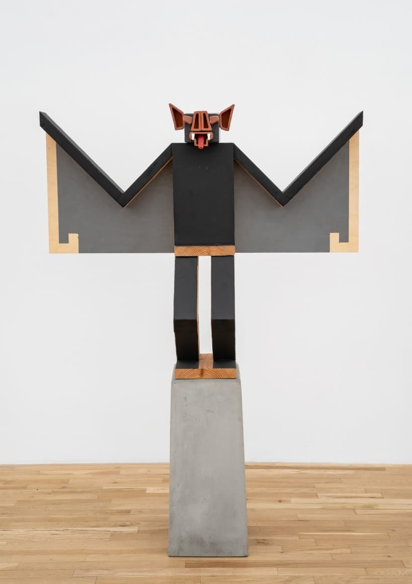 Split Level at Derek Eller Gallery presents Steve Keister’s mixed-media sculptures and wall works inspired by Mesoamerican architecture and myth. Using scavenged materials like Styrofoam, cardboard, wood, and ceramic, he transforms discarded forms into deities and mystical fauna. His sculptures stand monumentally, while wall pieces pulse with movement, creating a dialogue between the ancient and the contemporary.
