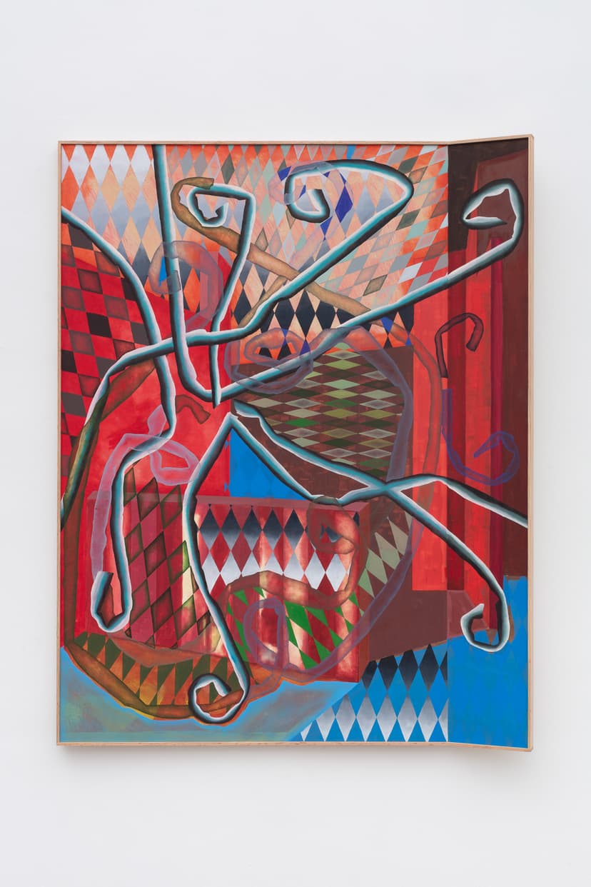 NOON Projects presents "Starting Gate" by Alex Kerr, a new exhibition exploring desire, control, and deflection. Kerr's first solo show with the gallery features ceramic lamps, bronze works, paintings, and a sound piece. The works blend theatrical symbols, surrealist humor, and a focus on identity’s shifting nature. Through objects like oversized lamps and rotating bronze plates, Kerr investigates self-mythology, performance, and transformation, inviting reflection on the balance between revelation and withdrawal.