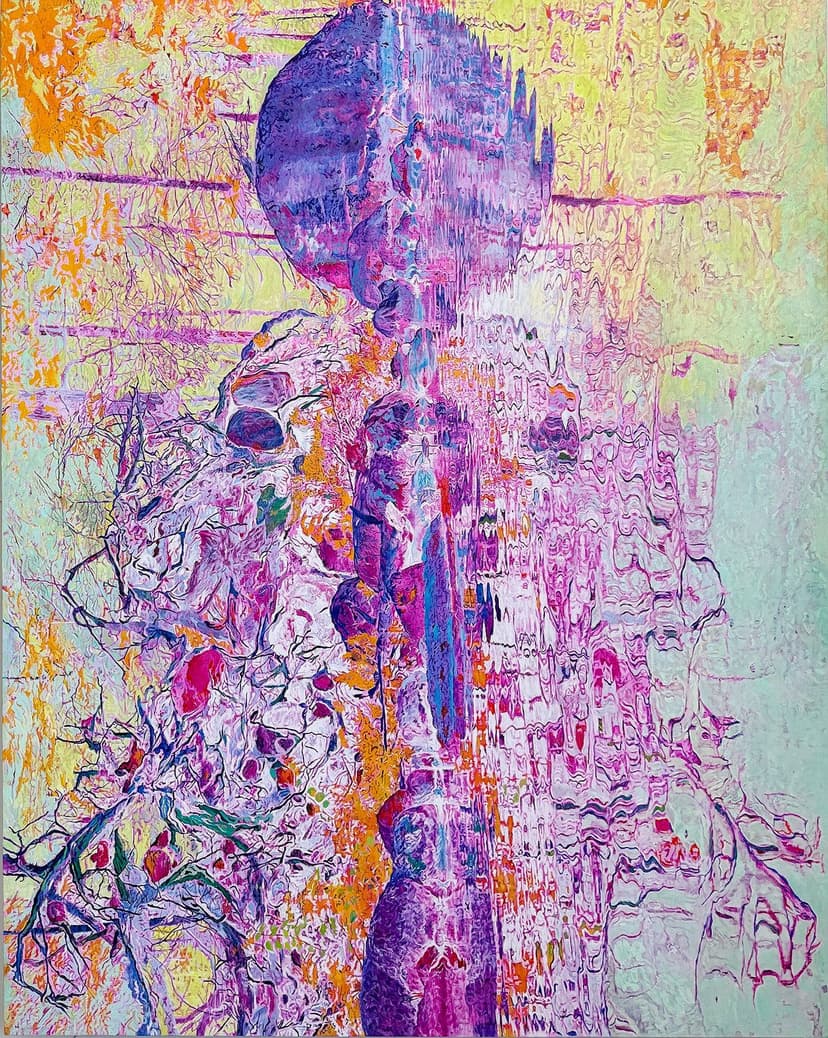 Cynthia Lin: Strange Twin at Satchel Projects reorients landscapes vertically, disrupting traditional perspective and color to create flickering, symmetrical forms drawn from lake-edge environments. Reflections evoke insects, totems, or body systems, becoming ambiguous Rorschach-like figures. Rooted in her experience of cultural dislocation, the works invite slow, contemplative viewing and offer shifting, multifaceted interpretations.