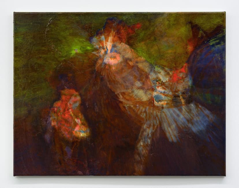Survived by Sights considers how painting can convey the liveliness of perception within a still image. Gaucher works through sustained looking, bodily movement, and shifting attention, allowing time, inconsistency, and contradiction to shape his forms. Rather than fixed representation or spectacle, the paintings follow what leaves an impression, zooming in and out of focus. The resulting works trade motion for volatility, preserving the pulse of seeing itself.