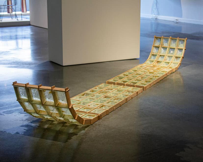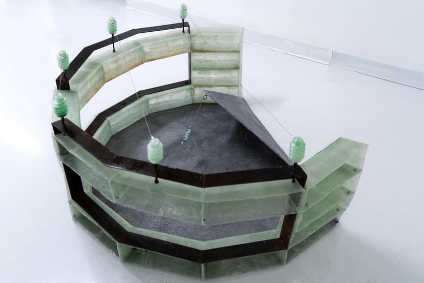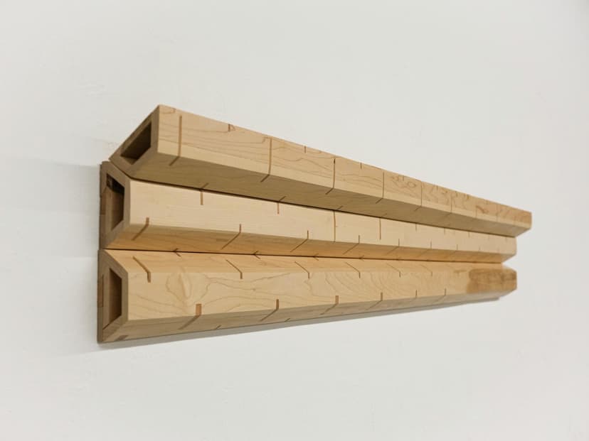Leah Liu Yutong presents an installation centered on hollow forms, modular structures, and sound. Drawing on Taoist ideas of emptiness and function, the works use repetition, misalignment, and enclosure to create spaces shaped by air, gravity, and resonance. Sculptural elements move from floor to wall, emphasizing volume, absence, and bodily perception as active forces within form.
