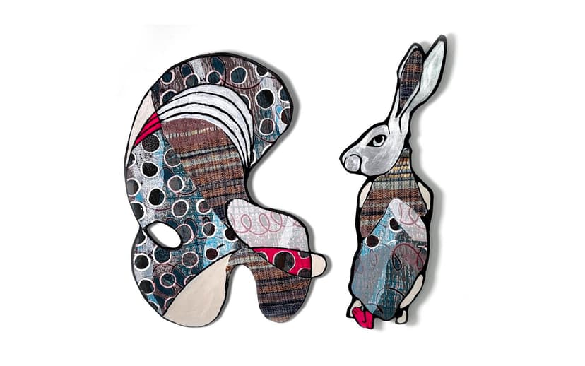 440 Gallery presents The Moment Before You Run, a solo exhibition by Juliet Martin, on view now. Through mixed-media tapestries combining hand-woven fabric, Masonite, and digital techniques, Martin explores fear and identity in a surreal dialogue between a rabbit and a cloud. Caught in a moment of self-recognition and uncertainty, the rabbit symbolizes the tension between perception and transformation, inviting reflection on the fragile space between fear and self-awareness.