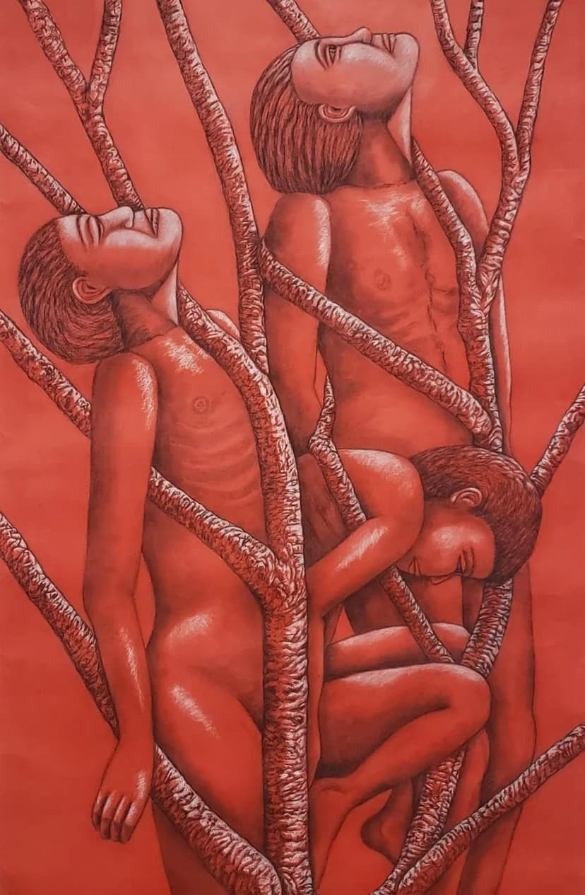 Ceres Gallery presents “The Scarlet Studies” by Nancy Kahlo-Curtis. This Kahlo-Curtis exhibition is made up of mural-sized black and white charcoal drawings on scarlet paper. The large imaginative drawings, inspired by ancient mythology, celebrate the mystery of ritual and the evolution of symbolic expression.