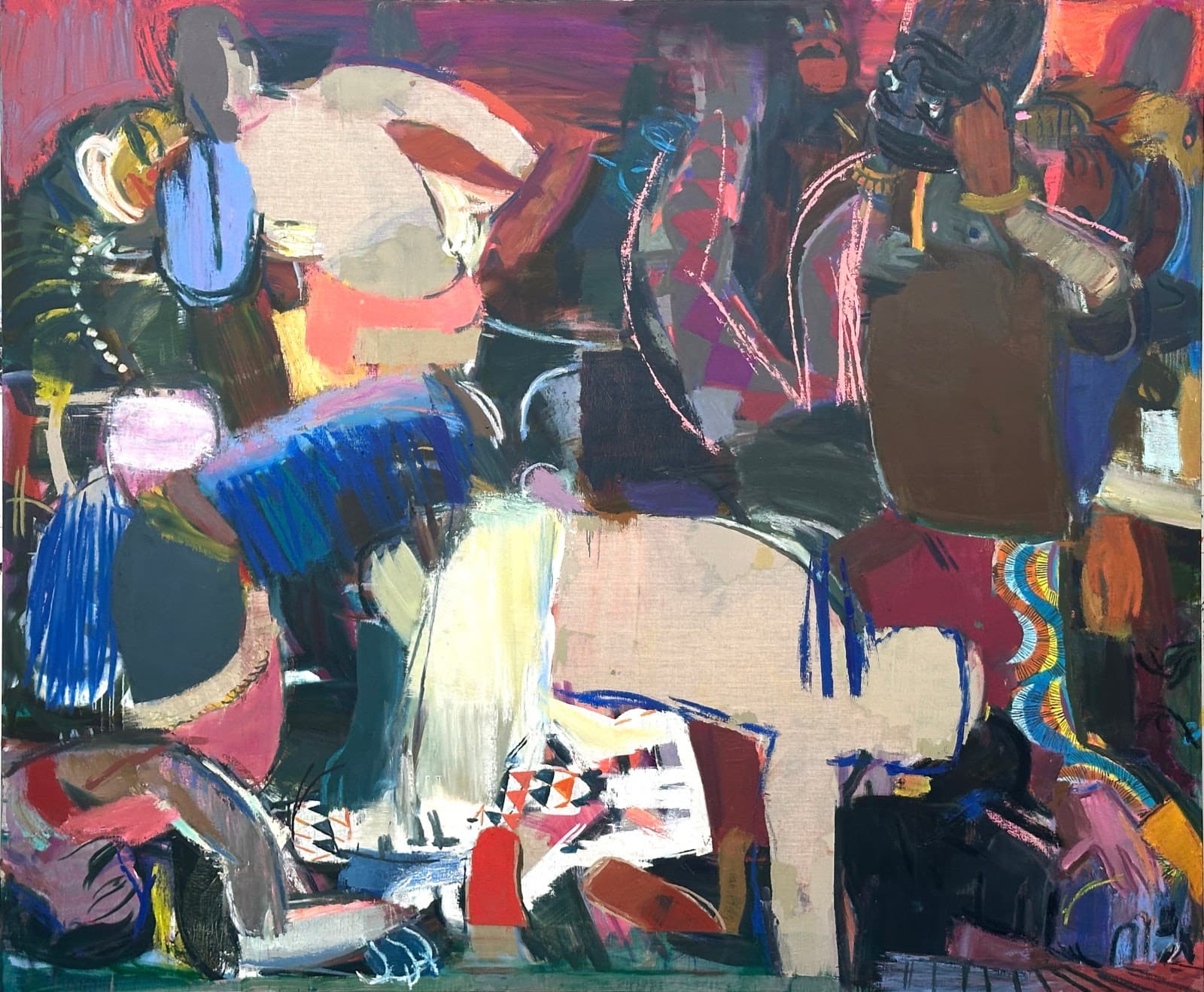 Nathalie Karg Gallery presents The Sleep of Reason, a solo exhibition of new work by Sangram Majumdar. Featuring recent paintings and a site-specific wall drawing, the exhibition explores the relationship between bodies and the spaces they inhabit during moments of upheaval. Drawing on historical and contemporary references, Majumdar’s layered process embraces ambiguity, inviting viewers into a world of shifting gestures, partial images, and unresolved narratives.