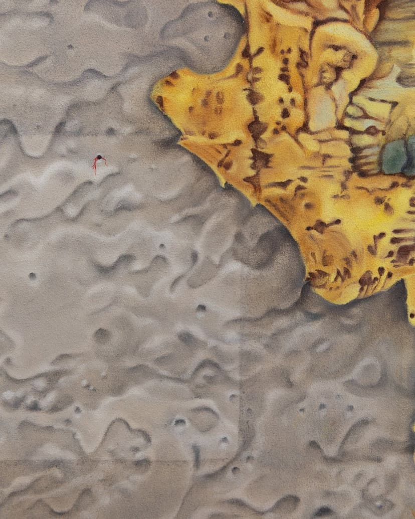 Audrey Leshay’s debut solo exhibition "The Terminal Beach" at Chris Sharp Gallery delves into time, memory, and decay. Through poetic reflections, Leshay explores the fragility of time capsules, where preserved objects fail to capture eternity. Her works evoke time travel as a loop, where attempts to understand the past are futile, like trying to separate mixed coffee and milk. The exhibition portrays time as both a ruin and a relentless force, transforming familiar spaces and eroding meaning.