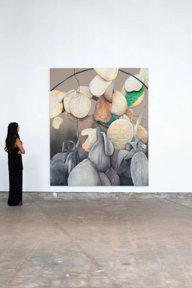 Things I Can’t Unsee by Adele Renault at Good Mother Gallery features detailed oil paintings capturing overlooked scenes of Los Angeles—graffitied trees, overgrown cracks, urban decay. Using photography, aerosol, and brushwork, Renault transforms incidental sights into striking portraits of a city shaped by disruption and resilience. Her work resists glamor, offering instead a direct, personal record of what persists in the margins, demanding to be seen and remembered.