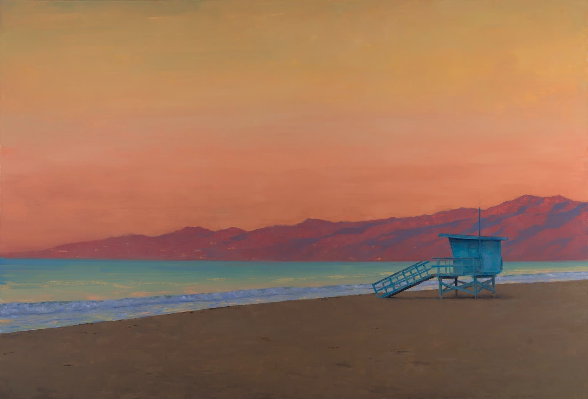 This new body of work brings Harris’ process home—literally. The Venice series is about a place Harris knows well: Venice, CA, his home for the last 25 years. Instead of through the eye of a visitor, these paintings are from the perspective of decades spent in and around these spaces. The paintings are about a place but also about the artist—revisiting locales and vistas that have been part of his daily life for decades.