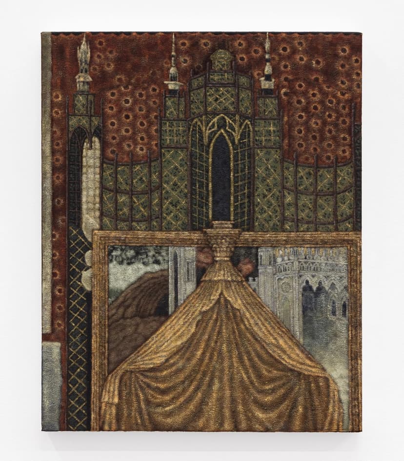 Vestige gathers Abbey Muza, Jennifer Carvalho, Ben Cowan, and Fabiola Jean-Louis around the image as something perpetually in motion — traveling across time, material, and meaning. Muza's dye-printed woven textiles shift between clarity and abstraction; Carvalho layers half-remembered art historical references into luminous surfaces; Cowan compresses sacred iconography into Gothic-framed scenes; Jean-Louis embeds diasporic and Vodou histories within baroque portraiture. Historic manuscripts and medieval miniatures complete the exhibition as active participants rather than backdrop.