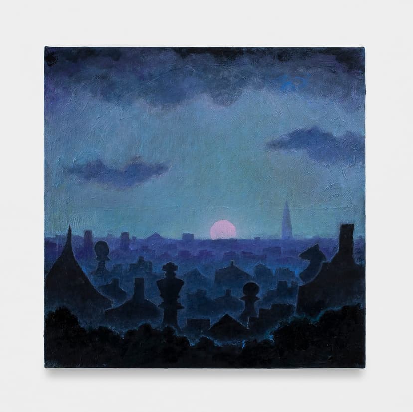 Wayfaring Stranger is a group exhibition featuring works by Ned Armstrong, Zuzanna Bartoszek, and Dylan Solomon Kraus, three painters who share a dialogue around the narrative and atmospheric capacities of figurative painting. A deliberate flatness of painting and a restrained, meditative use of color inflect their uncanny tableaux with a highly personal interiority. The artists’ personal histories shape their retro-futurist storytelling, converging fragments of memory with elements of cultural imagination drawn from film and literary representations.