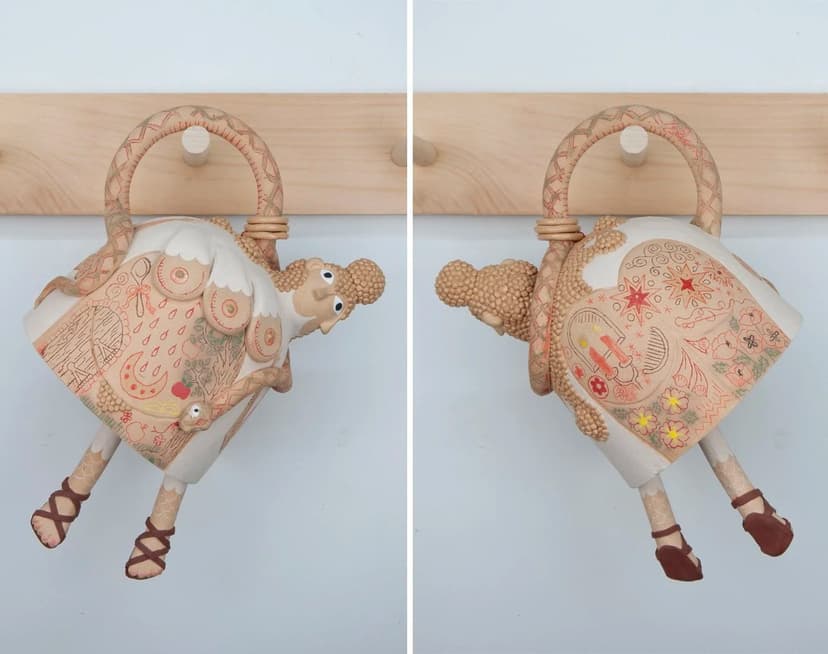 In We Know That We Know, Chiara No transforms domestic objects into vessels of memory and resistance, using rugs, bells, spoons, and chairs to tell erased or distorted histories. Gossip—stories shared for care and survival—anchors the work as coded knowledge and protection. Collaborators contribute with a gossip chair, surreal interiors, and fiber sculptures, emphasizing memory, trauma, and storytelling as tools for connection and defiance.