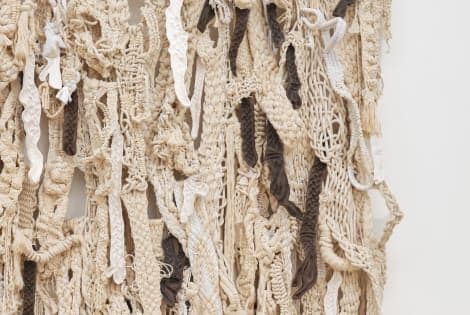 Weighted marks Tanya Aguiñiga’s first solo exhibition with albertz benda, on view May 8–June 21, 2025. Imagining the gallery as a cosmic body rooted in the earth, Aguiñiga creates works from cotton, copper, stone, and clay to explore survival, collective memory, and empowerment. Inspired by the experiences of marginalized bodies, the exhibition honors the body as a vessel of ancestral wisdom, weaving together personal, communal, and material histories into a dynamic whole.