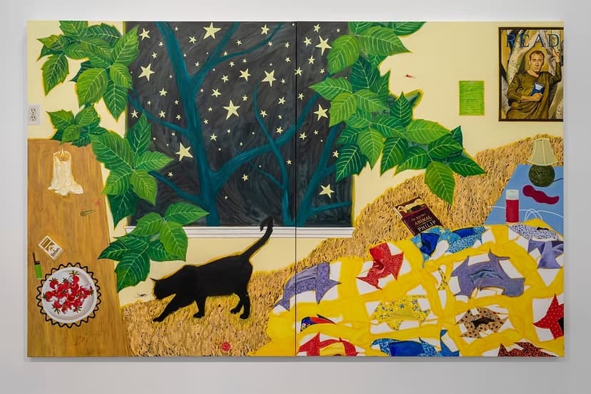Catherine Wang’s debut solo at AMPHI Gallery captures the tension of young adulthood through vivid still lifes and landscapes of suburban Los Angeles. Evoking both joy and unease, her works depict overgrown streets, smoldering embers, and intimate interiors marked by absence. Humor tempers foreboding as each scene becomes a fragment of narrative, reflecting change, resilience, and fleeting beauty.
