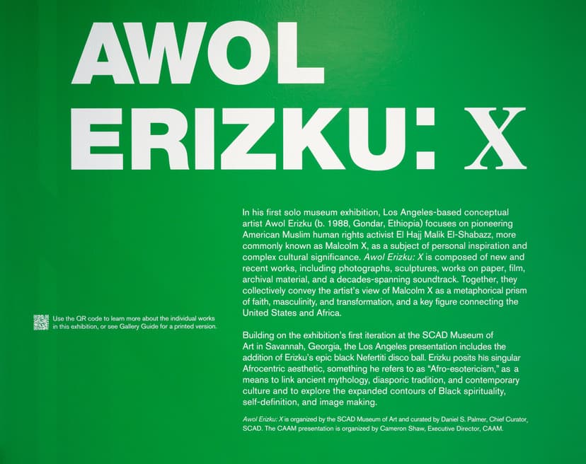 Awol Erizku: X is the artist’s first solo museum exhibition, centering Malcolm X as a figure of inspiration and complexity. Featuring photographs, sculptures, film, and archival material, the exhibition reflects Erizku’s vision of Malcolm X as a symbol of faith, identity, and transformation. Anchored by his concept of “Afro-esotericism,” Erizku connects diasporic culture, mythology, and spirituality, with added works including his black Nefertiti disco ball.