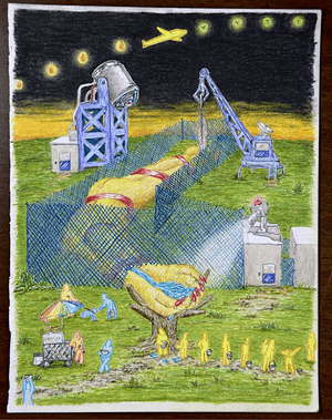 Xeno-Euphoria at Monte Vista Projects, curated by Ashton S. Phillips, features works by Sadie Greyduck, edua mercedes, and H. Leslie Foster II. Together, they craft a radical space of ecstatic dissonance and defiant joy. Through fractured sculpture, surrealist drawings, and a four-channel video liturgy of Mark Aguhar’s “Litanies,” the exhibition confronts systems of control while embracing queerness, transformation, and the alien within and around us.